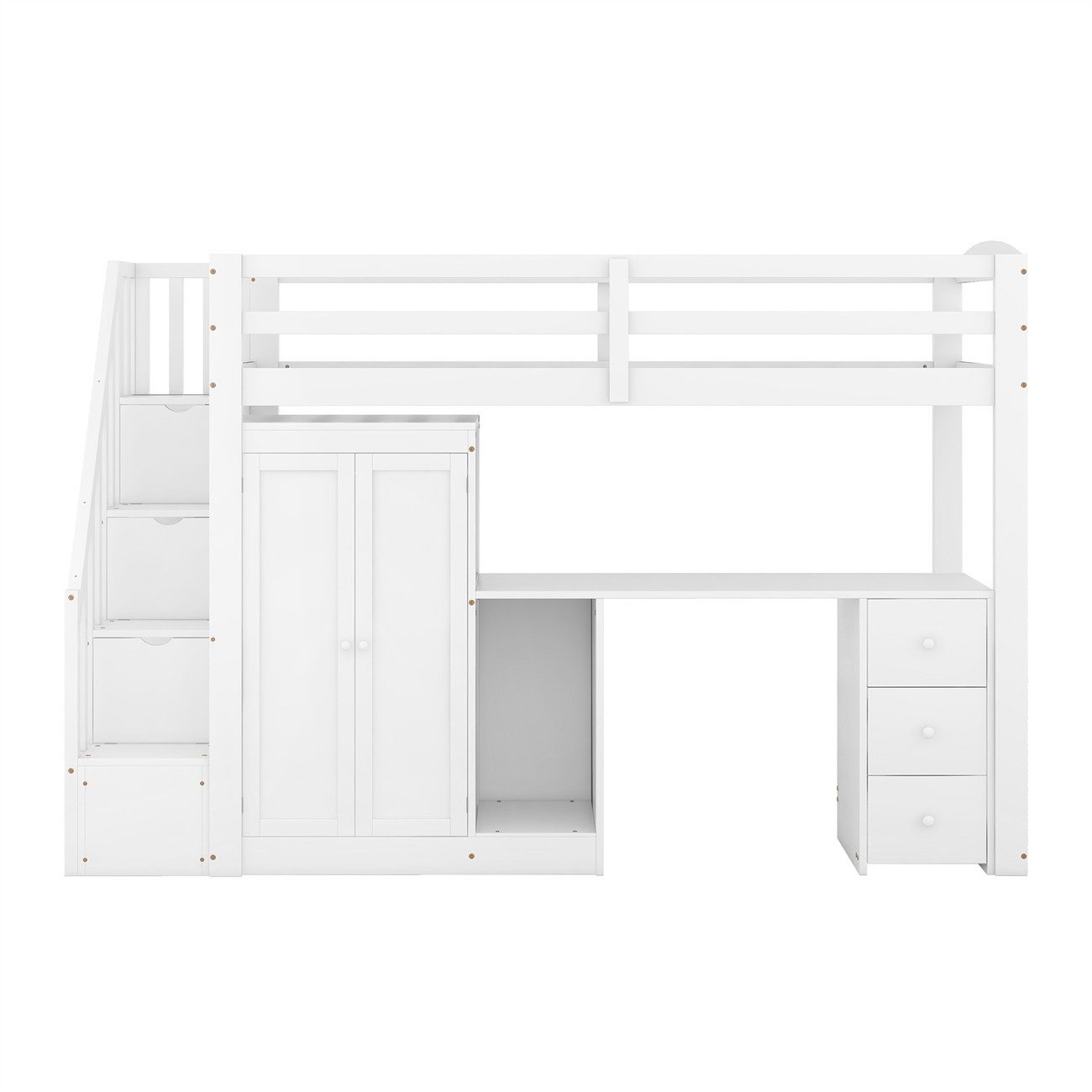 Brauchen Sie mehr Speicherplatz ... gerade jetzt? Mit diesem Hochbett aus der Kollektion wird Ihnen nichts ausgehen! Es bietet Ihnen eine Vielzahl von Stauräumen, die speziell für Ihr Zimmer konzipiert wurden. Sie erhalten einen eingebauten Schreibtisch,drei Schubladen und einen offenen Schrank in einem, sowie einen großen Kleiderschrank. Und die angeschlossene Treppe bietet auch Stauraum für Sie. Und das ist noch nicht alles! Unter dem Bett befindet sich ein multifunktionaler Raum, den Sie nutzen können, um Dinge außer Sichtweite zu halten oder ihn als Leseecke für sich selbst zu nutzen.