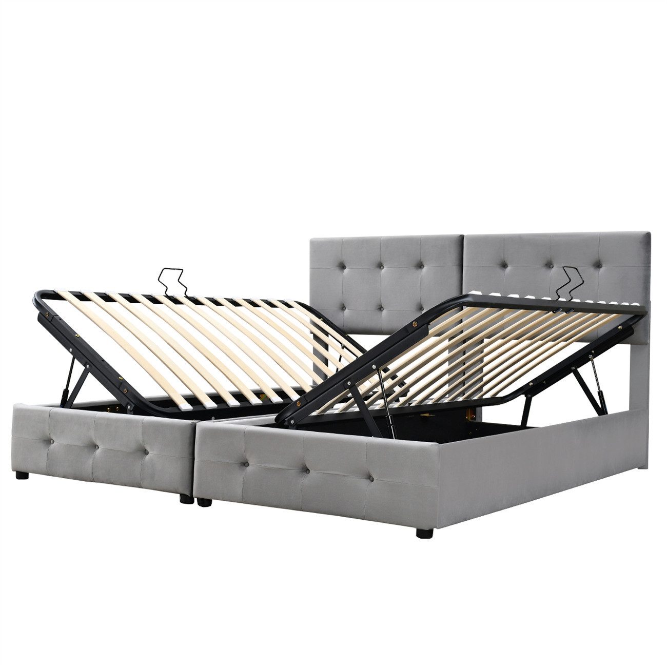 Ganz gleich, ob Sie ein geräumiges Doppelbett oder zwei separate Kinderbetten benötigen, unser gepolstertes hydraulisches Stauraumbett bietet die perfekte Lösung. Die robuste Konstruktion und die hochwertigen Materialien garantieren eine lange Lebensdauer und Stabilität und machen es zu einer zuverlässigen Wahl für Ihr Zuhause.