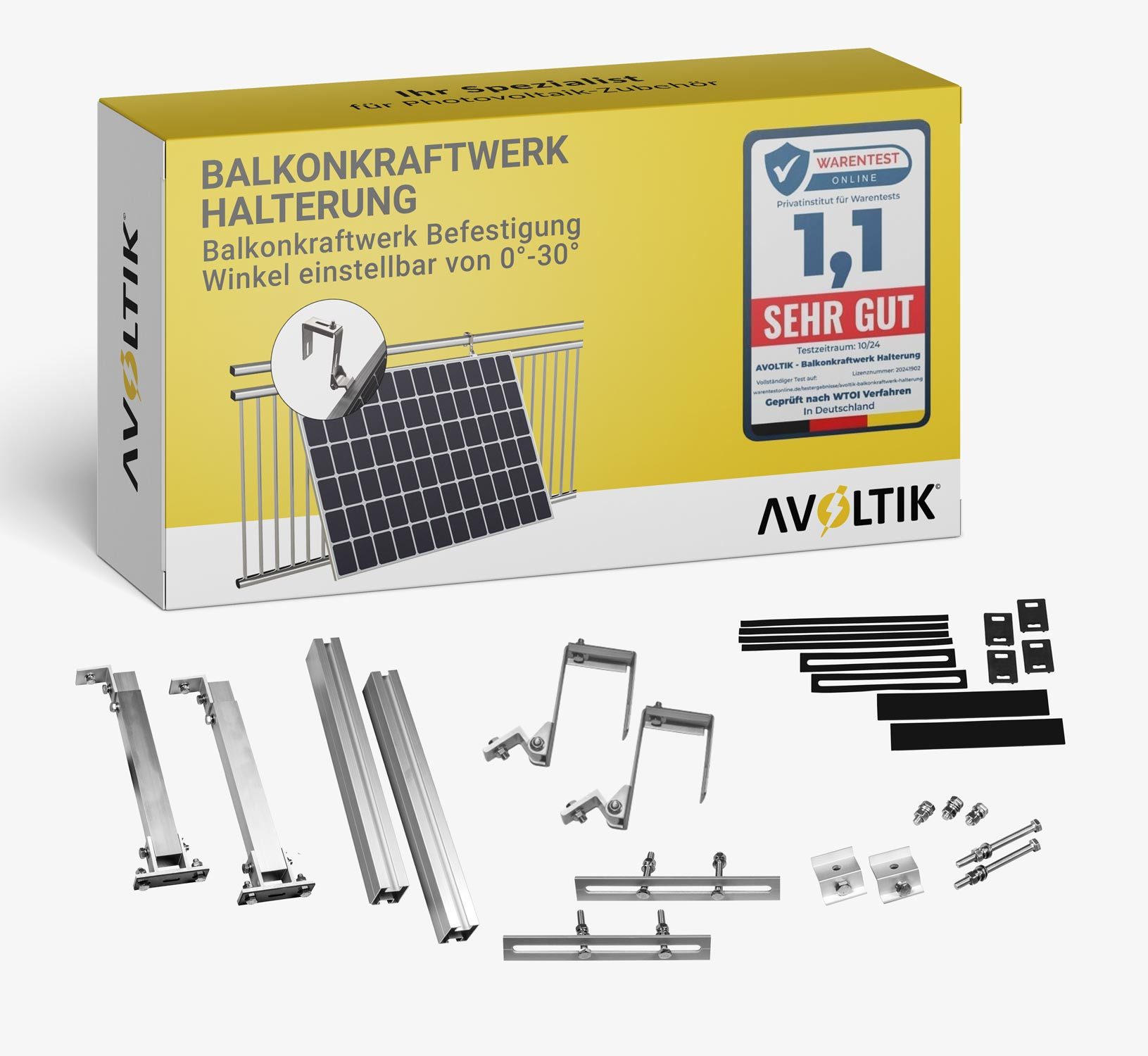 Eigenschaften | Für eckige Balkongeländer Neigungswinkel flexibel einstellbar von 0°-30° Balkonkraftwerk Halterungsset Eckig |