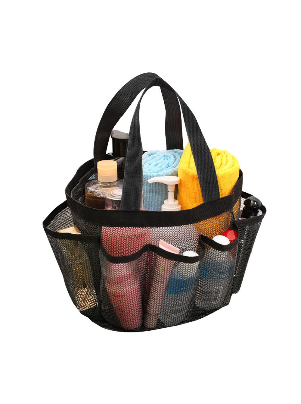 Einzigartiges Design: Die Duschtasche hat eine große Haupttasche und 7 Seitentaschen. Die Haupttasche kann verwendet werden, um große Gegenstände wie Handtücher Kleidung und Strandspielzeug zu verstauen; Die anderen 7 Taschen können Toilettenartikel, wie zB. Shampoo, Duschgel, Seife, Kosmetik, Rasierer, Gesichtsreiniger, Zahnpasta usw. aufbewahren. Großes Fassungsvermögen, genug für alle Badezimmeraccessoires. .Leicht und langlebig: Der atmungsaktive Mesh-Waschbeutel kann schnell trocknen werden. Nachdem der Beutel nass ist, kann das Wasser ohne zusätzliches Gewicht leicht abfließen. Der Duschkorb hat zwei Henkel, Sie können ihn überall hin mitnehmen, bei Nichtgebrauch zur Aufbewahrung zusammenklappen, er ist leicht zu reinigen, einfach mit klarem Wasser abspülen, das große Netz ermöglicht eine schnelle Reinigung entwässern. Diese tragbare Duschtasche besteht aus strapazierfähigem Netzgewebe, das stark und langlebig ist. Mehrere Nähfäden sind flach und dicht und die Nähte sind verstärkt, sodass Sie Reiseutensilien sicher aufbewahren können. Vielseitige Verwendung: Aufbewahrungstasche mit mehreren Taschen eignet sich für Fitnessstudios, Campingstränden, Schule und Reise und mehr verwendet und ist ideal zum Aufbewahren von Toilettenartikeln, Schuhen und Kleidung. vom Shampoo bis zum Strandspielzeug. Material: Die Duschtasche besteht aus Nylon - für eine lange Haltbarkeit. Lieferumfang: 1x Duschtasche