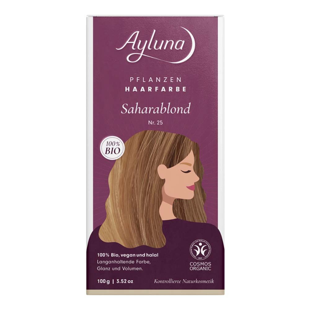 Besonders geeignet für hellblondes bis mittelblondes Haar. Ayluna Pflanzenhaarfarbe umschließt jedes einzelne Haar mit einer schimmernden Lasur ausgewählter Bio-Pflanzenauszüge. In Verbindung mit der natürlichen Ausgangshaarfarbe entstehen ausdrucksvolle, lebendige Farbtöne, Glanz und Volumen. Schonend und langanhaltend. Anders als chemische Haarfarben lässt Ayluna Pflanzenhaarfarbe die natürliche Haarstruktur unangetastet.