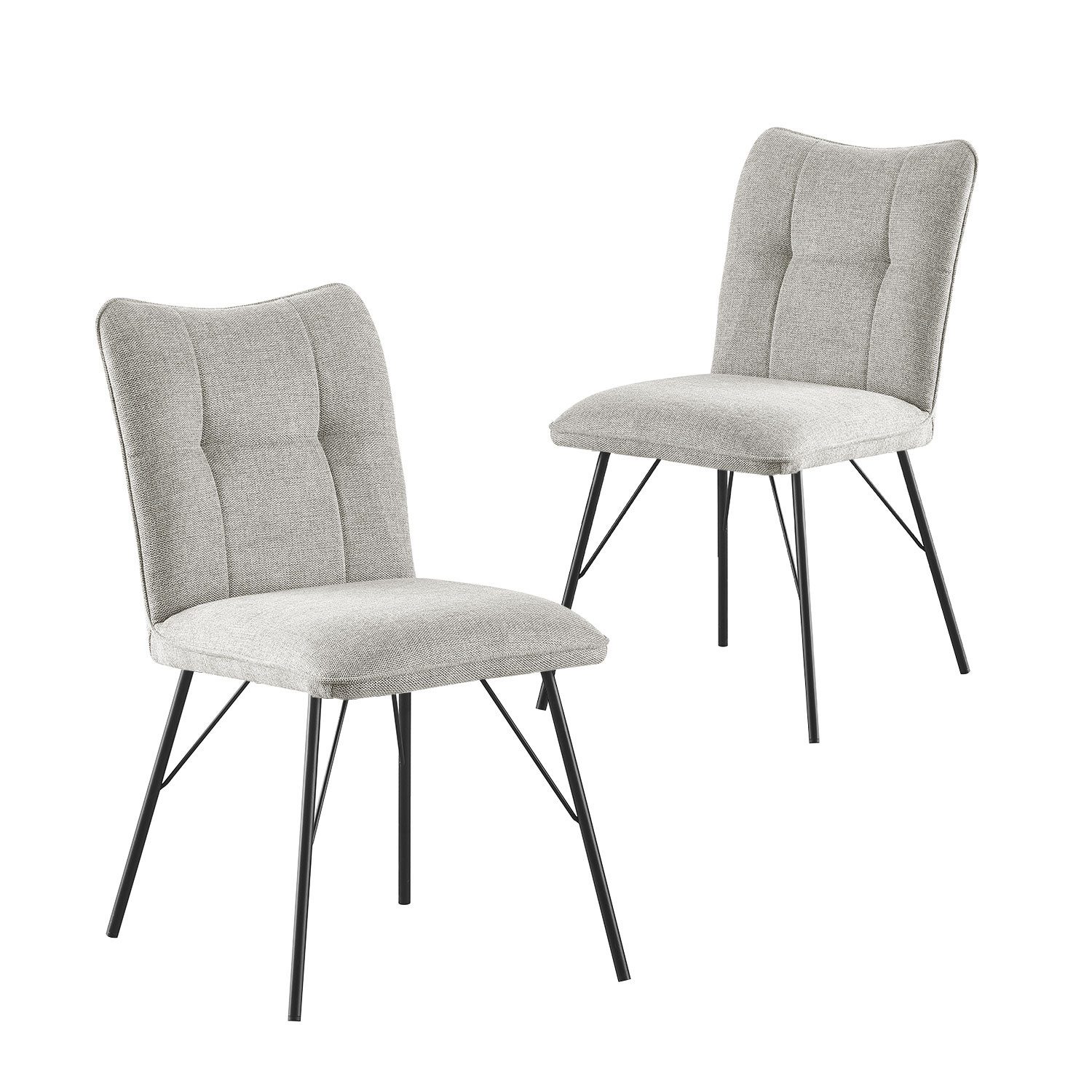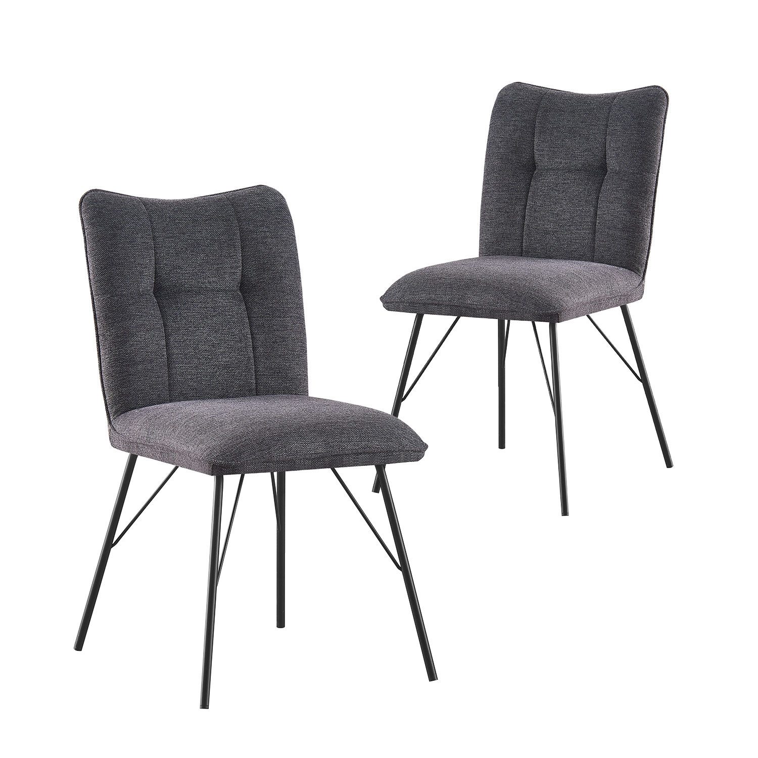 Der strapazierfähige und robuste Stoff sorgt nicht nur für Langlebigkeit, sondern verleiht den Stühlen auch eine ansprechende Optik. Die großzügige Polsterung bietet erstklassigen Sitzkomfort, während das stabile pulverbeschichtete schwarze Metallgestell für Stabilität und Langlebigkeit sorgt.