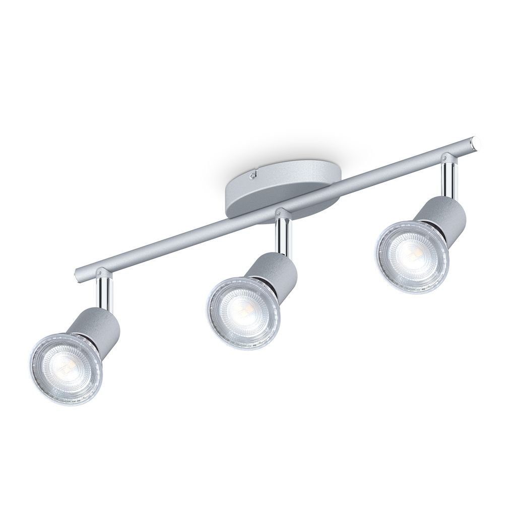 Wissenswertes | LED Deckenleuchte 3-flammig - Metall - titanfarbig - inkl.32 x LED - GU10 - 5W - 400lm - 4.000K - Lebensdauer 25.000 h - Ra>=80, - nicht dimmbar - Strahler dreh- und schwenkbar - IP20 - 385x100mm (LxBxH) |