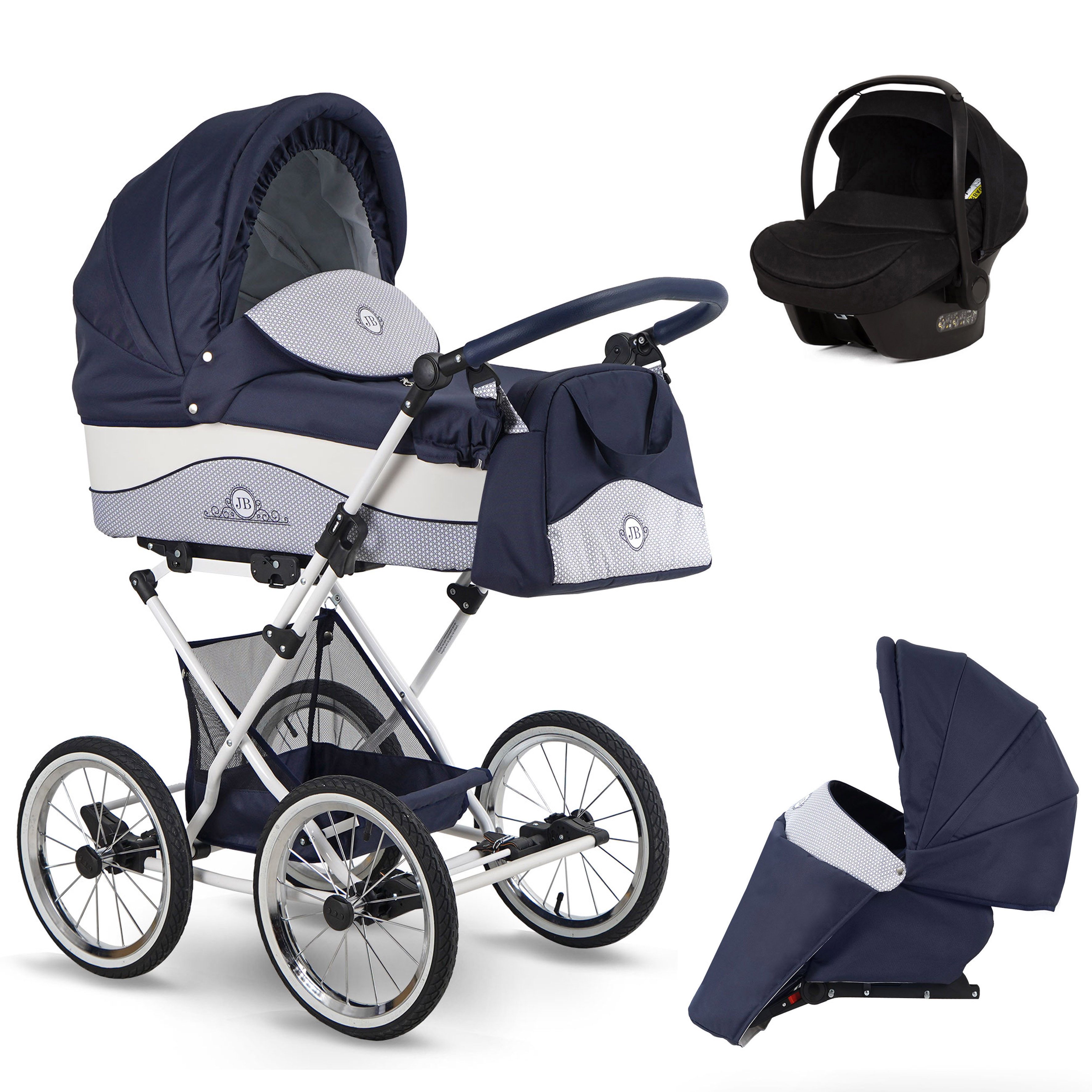 IHR SORGLOSPAKET - Das Kinderwagen-Set Rose Retro ist ein 4 in 1 Multitalent. Er wird mit 3 Aufsätzen - Wanne, Sportsitz und Autositz (inkl. Adapter für das Gestell für ein Travelsystem) - die sich einfach auf das Gestell anbringen lassen an Sie geliefert. Der Lieferumfang lässt keine Wünsche offen: Kinderwagen, Abdeckung, Matratze, Inlay, Sportsitz, Beindecke, Bauchbügel, Wickeltasche, Regenfolie, Insektennetz, Autositz und Gestelladpater. Всіs was Sie und Ihr Kind von Geburt bis zum 4. Lebensjahr für Unterwegs benötigen.