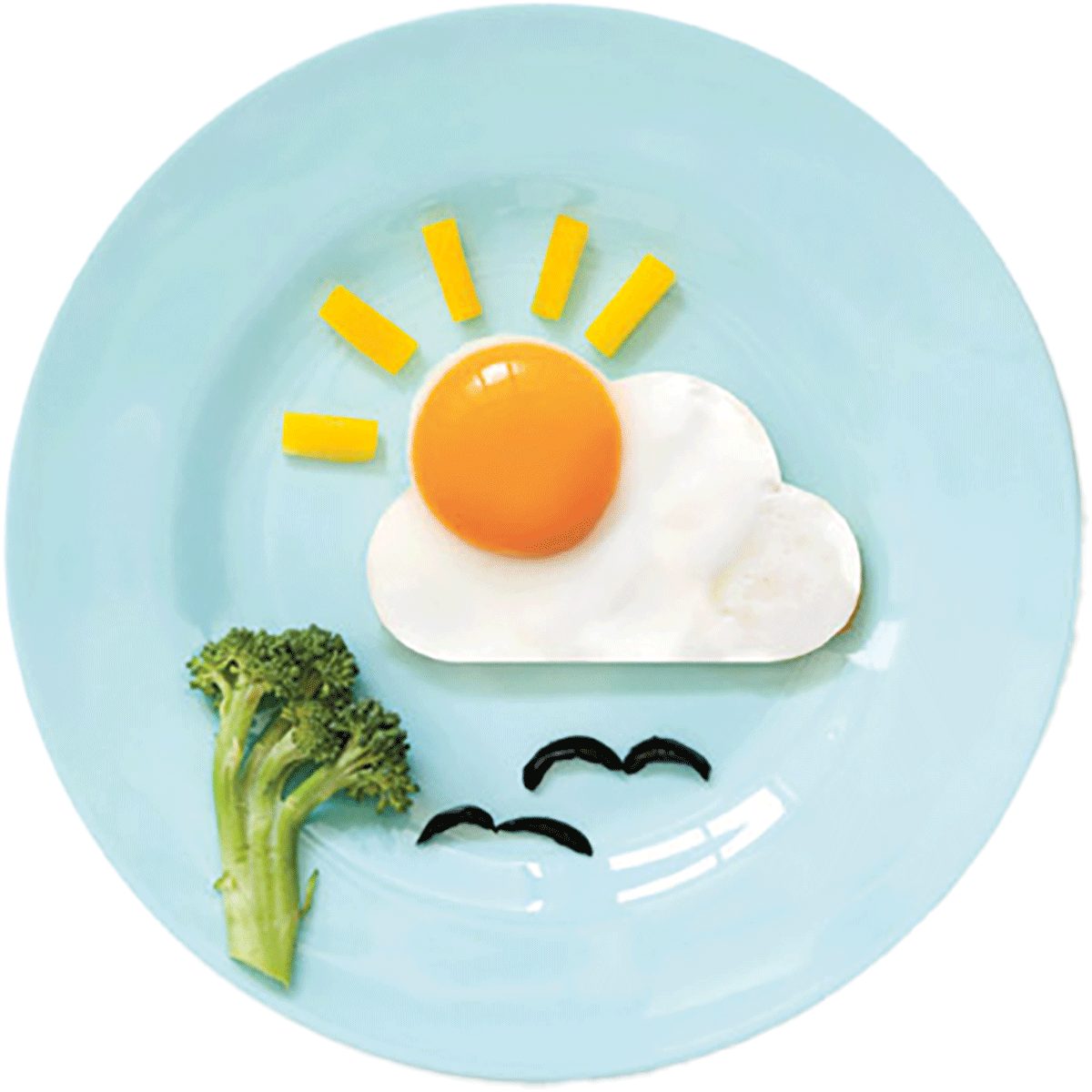 Heute gibt’s ein ganz besonderes Spiegelei! Mit dieser Silikonform können Sie ein mittleres bis großes Ei lustig in Form bringen, denn die zwei Kammern sind wie eine Wolke und eine Sonne geformt. In das Rund füllen Sie das Eigelb, in die Wolkenform das Eiweiß. Dafür legen Sie einfach das Silikonförmchen in eine mit ein paar Tropfen Öl oder Butter gefettete Pfanne (hitzebeständig bis 280 Grad). Ist das Spiegelei gar, nehmen Sie das Ei in der Form mit Hilfe eines Pfannenwenders aus der Pfanne und legen es auf einen Teller dann können Sie die Form abnehmen. Wer Lust hat, kann nun um das Spiegelei herum noch ein wenig mit Gemüsesticks oder anderen Köstlichkeiten dekorieren. Guten Appetit!