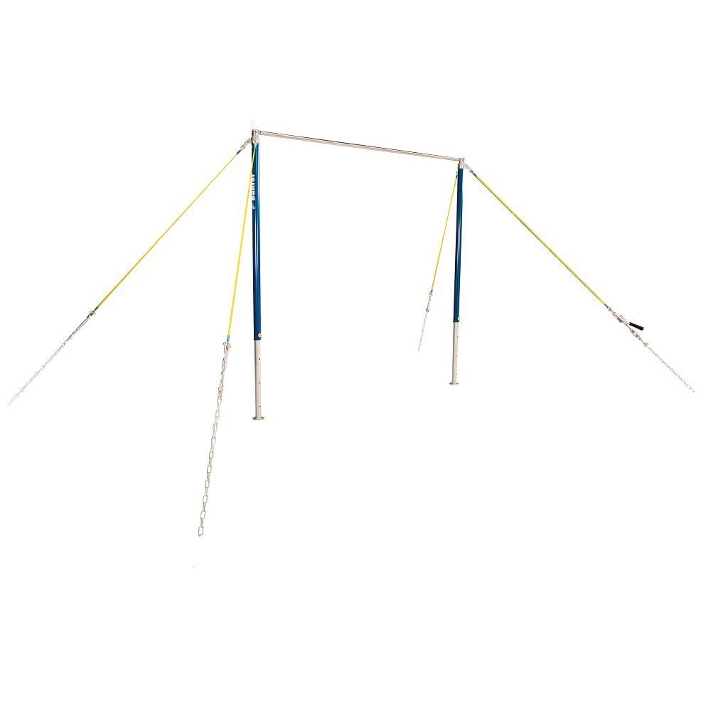 Das Bänfer Reck "Super" bietet optimale Voraussetzungen für das Methodik-Training. Es besitzt eine besonders solide Konstruktion. Hierzu gehören das Gerüst aus sehr beanspruchbarem Stahlrohr sowie die Reckstange aus rostfreiem Federstahl. Für besondere Sicherheit und Stabilität auch bei sehr dynamischen Trainingseinheiten sorgt die Befestigung der Stange – diese wird am Recksäulenkopf mit Bolzen und Federsicherung montiert. Sie können die Höhe des Recks optimal an die Körpergröße des Turnenden anpassen und in 5 cm-Schritten von 170 bis 275 cm verstellen. Die Montage im Hallenboden erfolgt mittels Verspannung an den DIN-Verspannungspunkten. Zur Erhöhung der Standfestigkeit auf punkt- und flächenelastischen Sporthallenböden empfehlen wird die im Zubehör erhältlichen Druckverteilerplatten – bestellen Sie diese gleich mit.