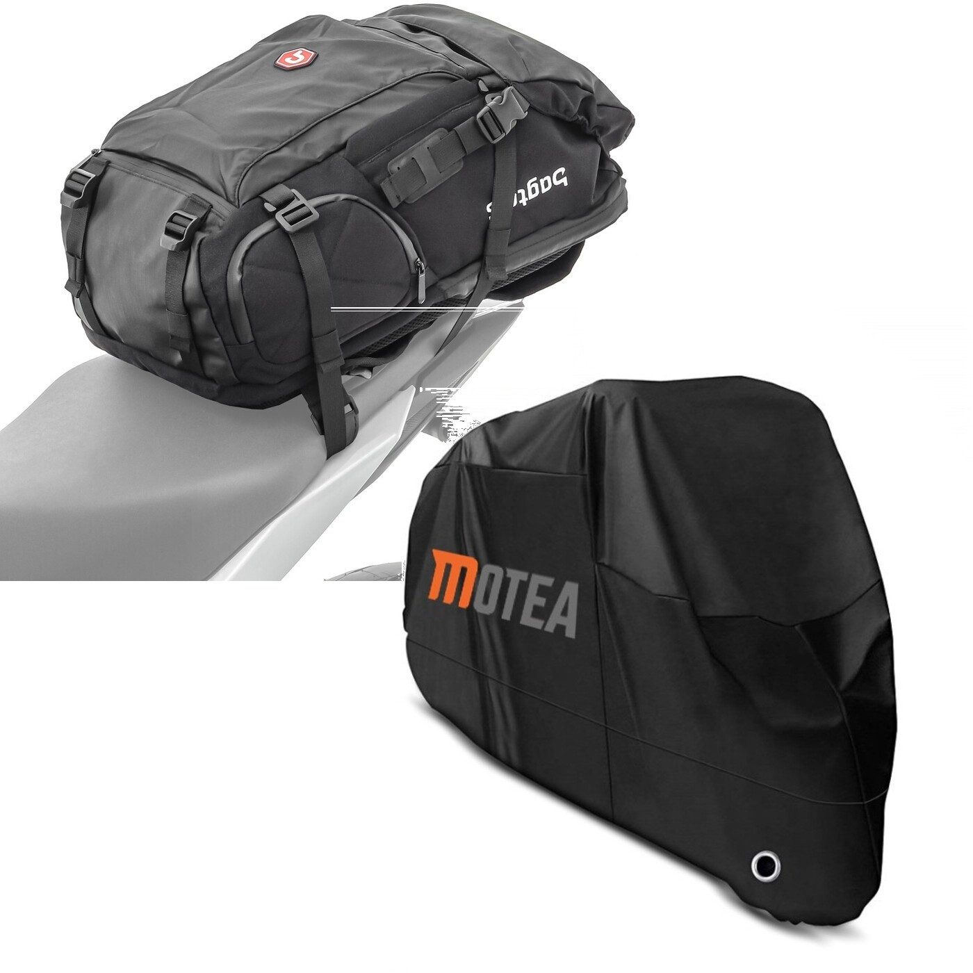 Reisetasche Set: Motorrad Rucksack HX5 Hecktasche wasserdicht 45Ltr mit Helmhalter
