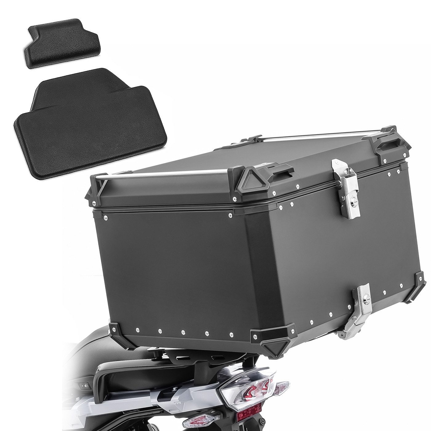 Topcase Set Motorrad Aluminium Topcase 100L + Sozius Rückenpolster # XB100 Alu