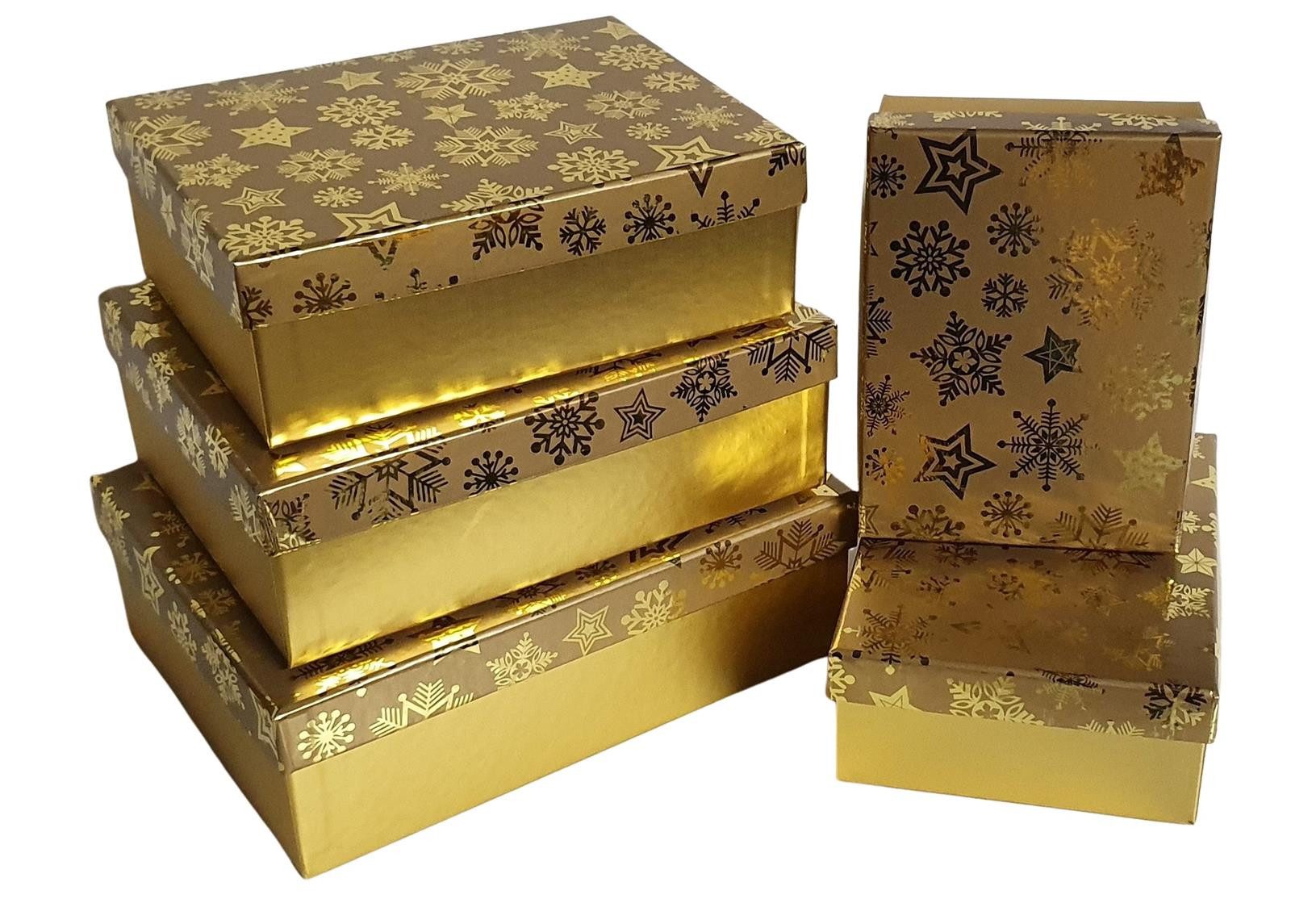 LIEFERUMFANG: 1 x Kartonage Set Geschenkbox Weihnachten foliert im Weihnachts-Design , bestehend aus 5 Boxen , Gr.: 24,5 x 18,5 x 8 cm und Kl: 16,5 x 12,5 x 6 cm .
