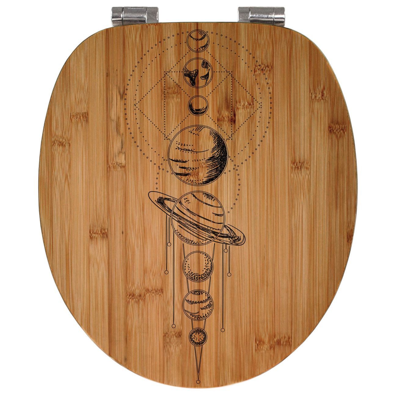 banjado WC-Sitz Bambus mit Gravur Astronomie 5 (umweltfreundliches Material, integrierte Absenkautomatik), 45,8 x 37,5 x 5 cm