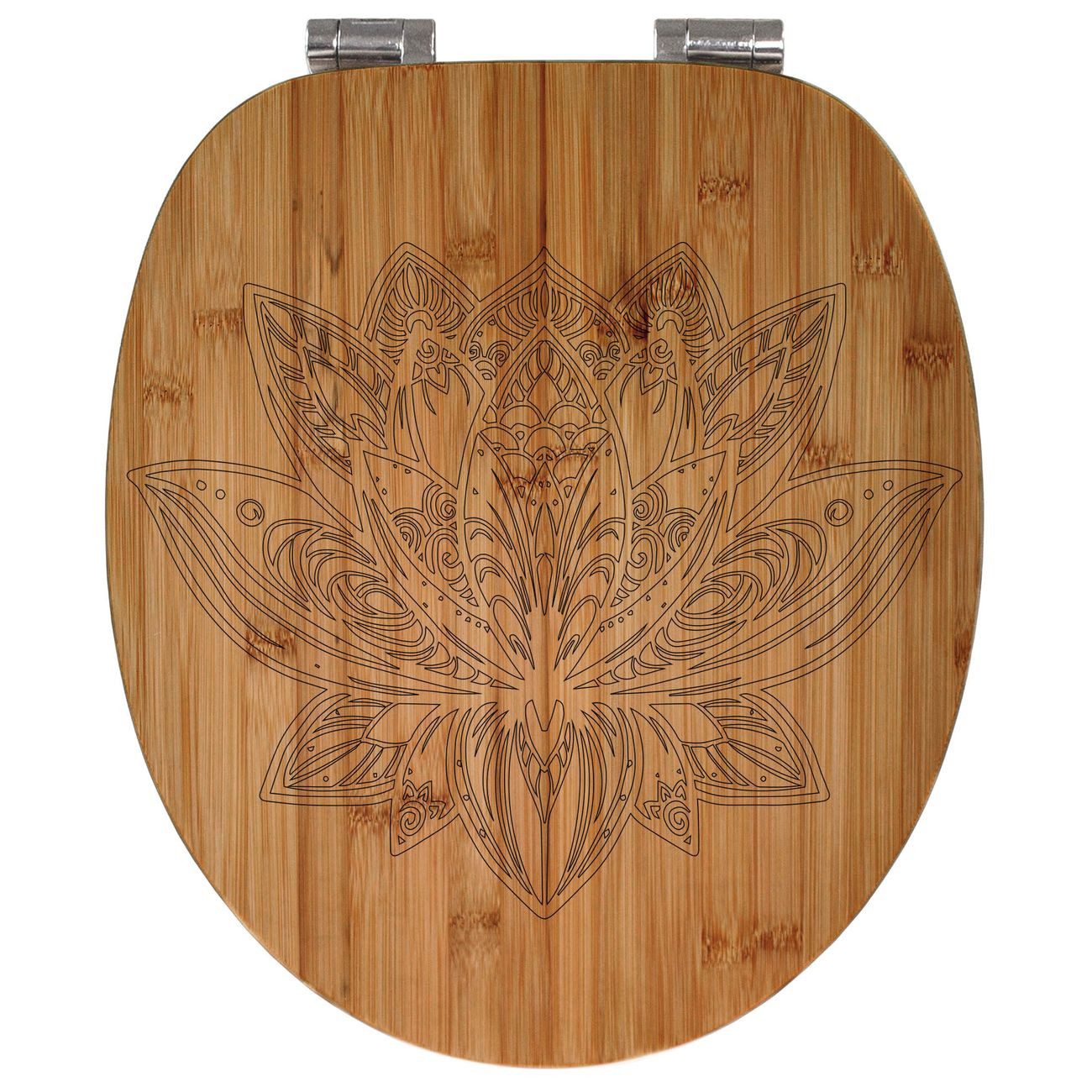 banjado WC-Sitz Bambus mit Gravur Lotusblühte 3 (umweltfreundliches Material, integrierte Absenkautomatik), 45,8 x 37,5 x 5 cm