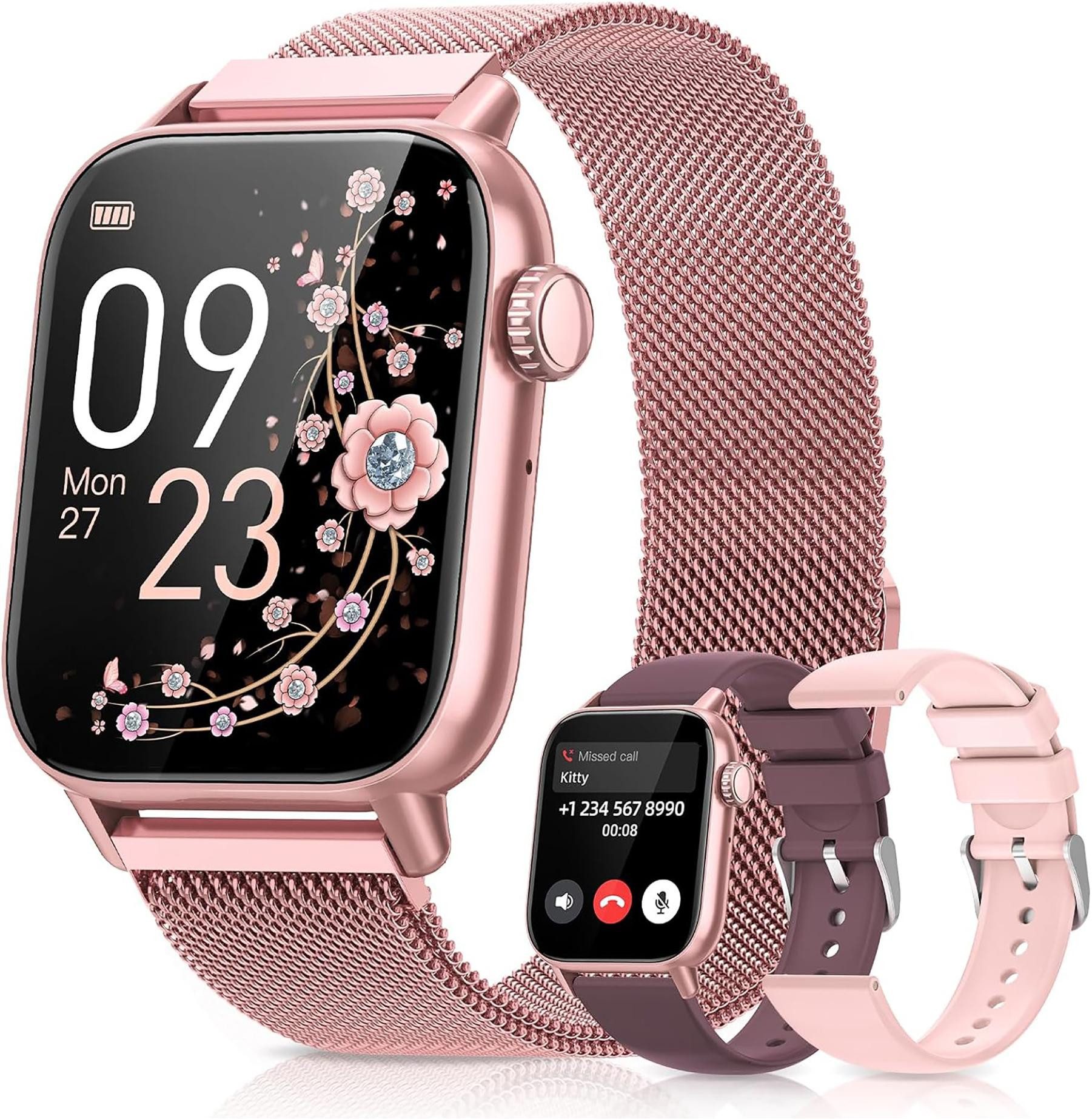 Unsere elegante Damen-Smartwatch mit einem zarten, rosa Edelstahlarmband und zwei passenden Silikonbändern. Egal ob Geburtstag oder Feiertag, dieses stilvolle Accessoire verleiht jedem Outfit den letzten Schliff. Ein Geschenk, das Schönheit und Intelligenz vereint.