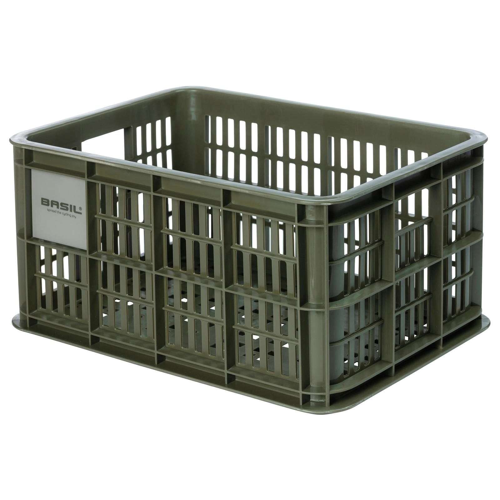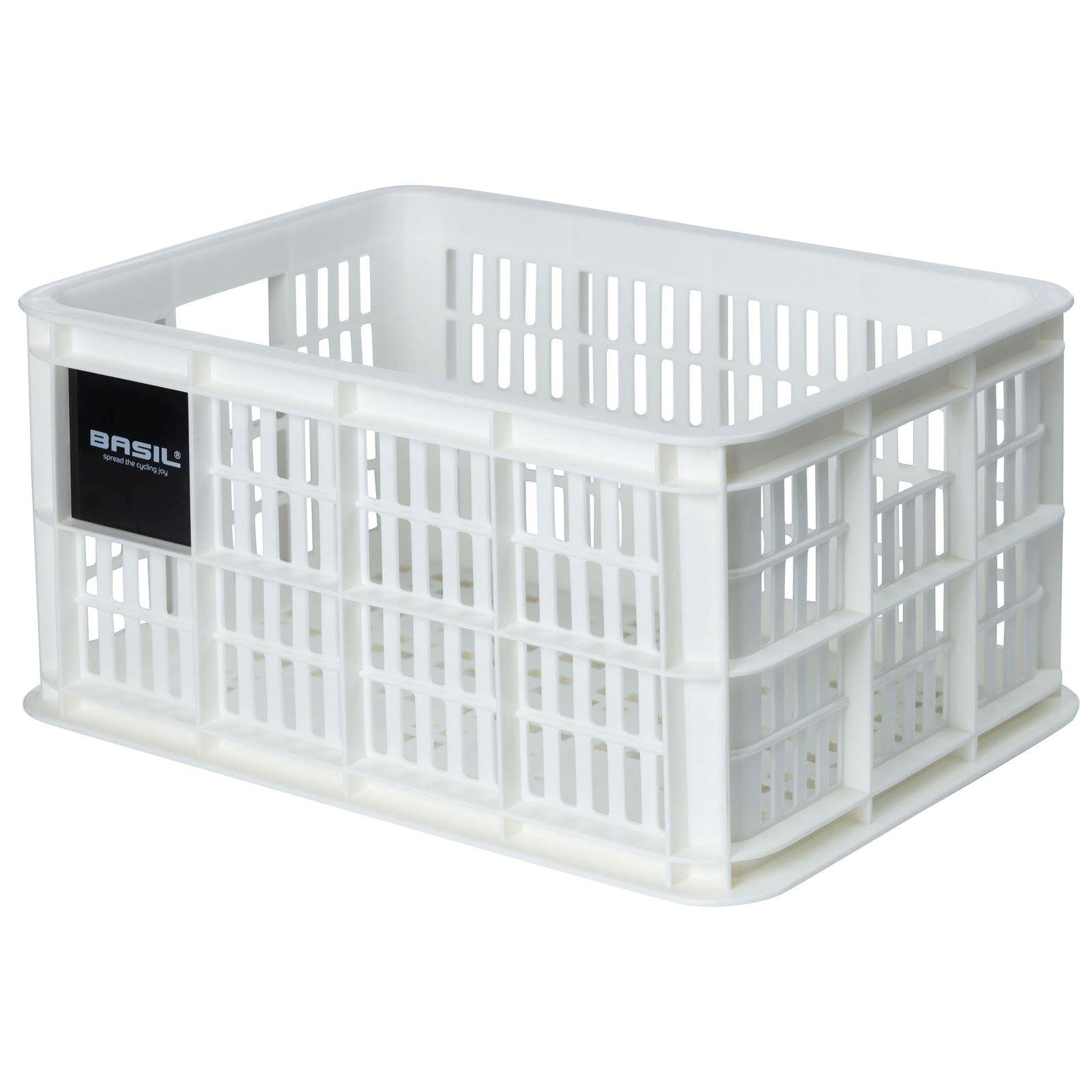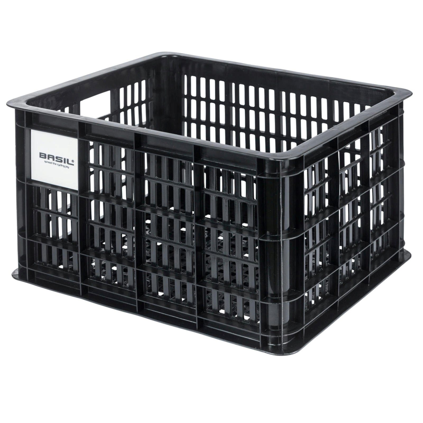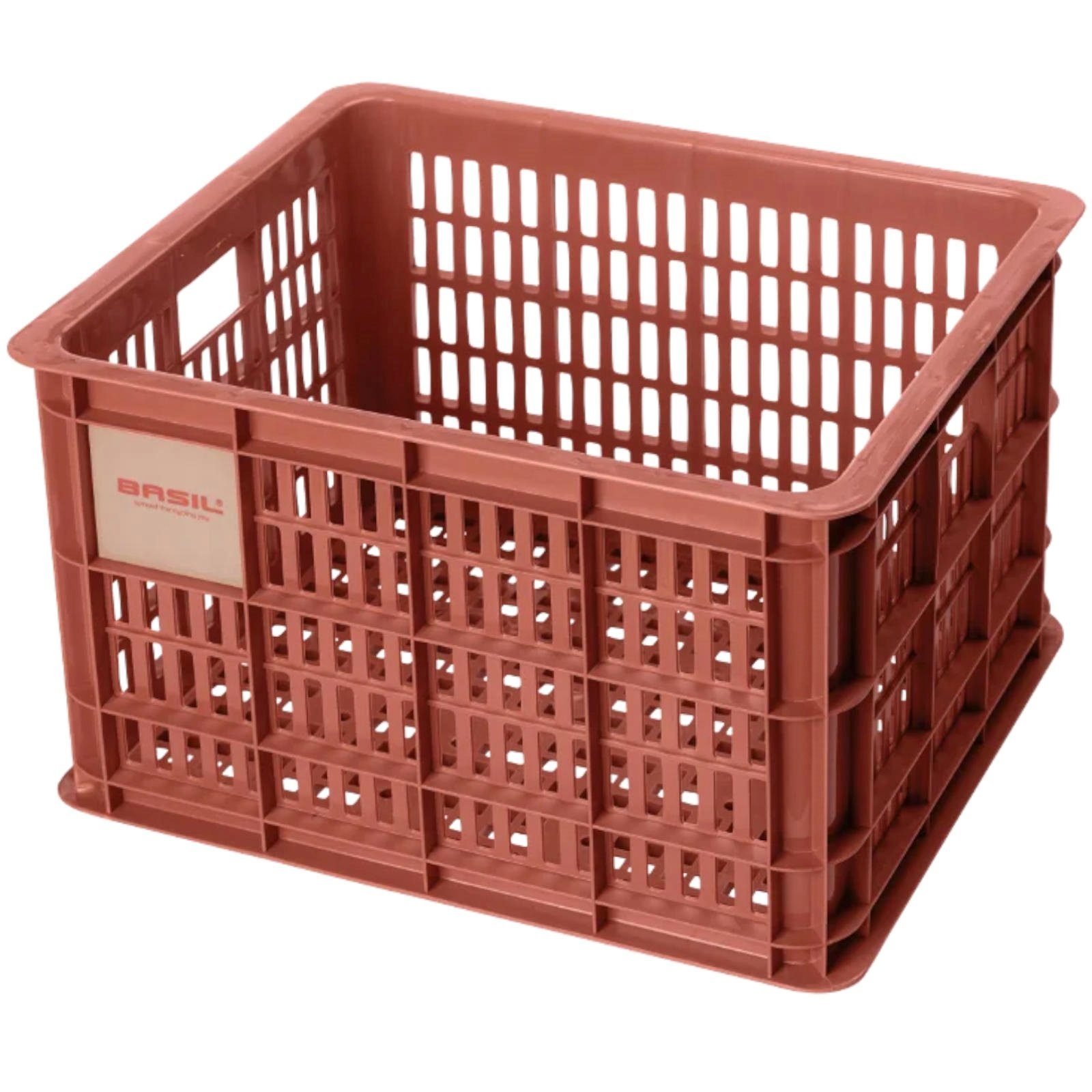 Basil Crate - moderner Fahrradkorb in Kistenform aus stabilem Kunststoff. Robust, wetterfest und in verschiedenen Größen erhältlich, ideal für Alltag und Einkauf.