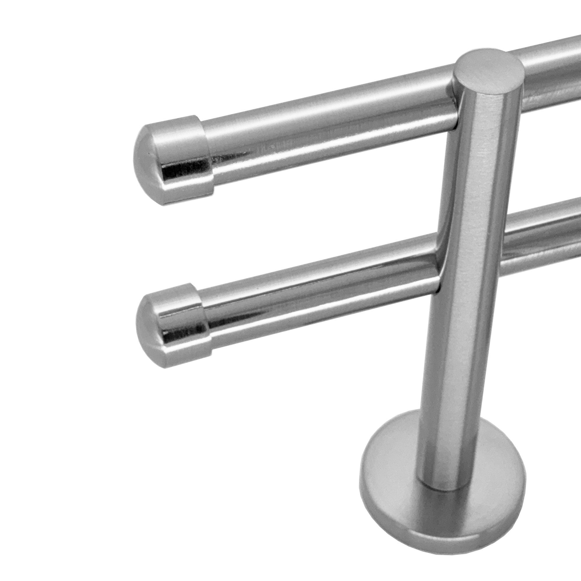 Material: Echtes Edelstahl Gardinenstangenrohr Ø 16mm geschliffen, Träger aus Zinkdruckguss und Endkappen aus Aluminium mit hart verchromter Oberfläche in Edelstahl Look. Die Kristalle an den Endkappen sind aus Kunststoff.