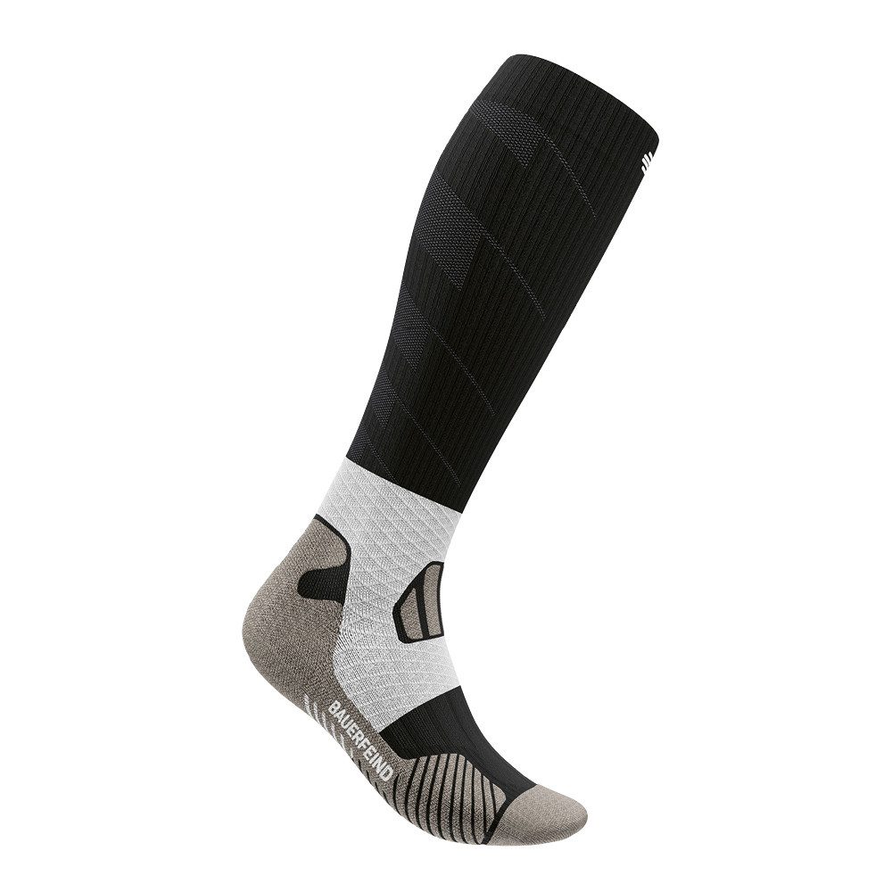 Dank Targeted Compression bekommen Deine Muskeln den entscheidenden Boost, wenn sie ihn brauchen. Zonenspezifische Kompression für mehr Power auf langen Trails Die Trailrunning-Socken unterstützen mit spezifischen Kompressions- und Komfortzonen das Laufen im Gelände. Sie wurden eigens für das Trailrunning in Zusammenarbeit mit professionellen Trail-Läufern entwickelt und bieten durch die „Infinity Zone X-TREME“ mit einer verstärkten Kompression im Bereich des Sprunggelenks ein erhöhtes Stabilitätsgefühl. Dies fördert einen sicheren und runden Tritt auch abseits der üblichen Wege. Die zonenspezifische Wadenkompression steigert die Effizienz der Muskulatur. So ermüden die Waden langsamer und bleiben auf langen Strecken leistungsfähiger. Trailrunning-Socken mit cleveren Funktionszonen Die Komfortzonen „Downhill Comfort“, „Toe Comfort“, „Heel Comfort“, und „Air Channel Sole“ bieten dank spezifischen Materialverstärkungen angenehmen Tragekomfort in der aktiven Bewegung. Insbesondere beim steilen bergab Laufen reduzieren die polsternden Elemente den Druck auf Zehen, Sohle und Fußbeuge. Die „Air Channel Sole“ bietet dank Lüftungskanälen hohe Atmungsaktivität und fördert gleichzeitig die Rutschfestigkeit im Schuh. Für die korrekte Größenauswahl sind die Розмір взуття und der Wadenumfang zu bestimmen. Die Trail Run Compression Socks in sportlichem Design sind langlebig, atmungsaktiv und bei 40°C waschbar. Sie werden unter Einhaltung höchster Qualitätsstandards gefertigt.
