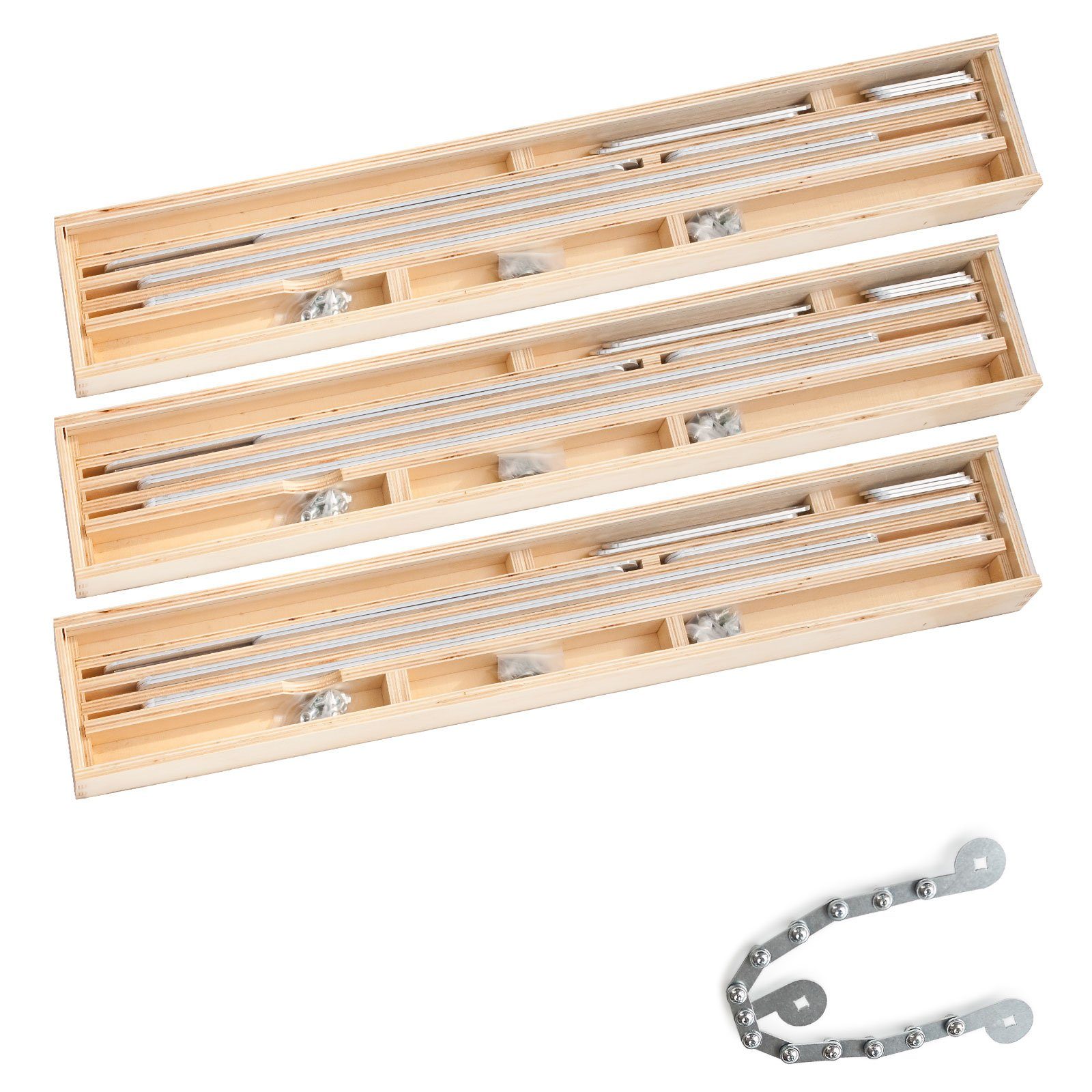 Lieferumfang | PROFI-SET 3· 1 x Element für Rundungen· 39 x Aluschienen bestehend aus· 6 x 800 mm· 6 x 700 mm· 3 x 500 mm· 3 x 350 mm· 6 x 300 mm· 6 x 200 mm· 9 x 100 mm· 9 x Schraubenset· 3 x Koffer |