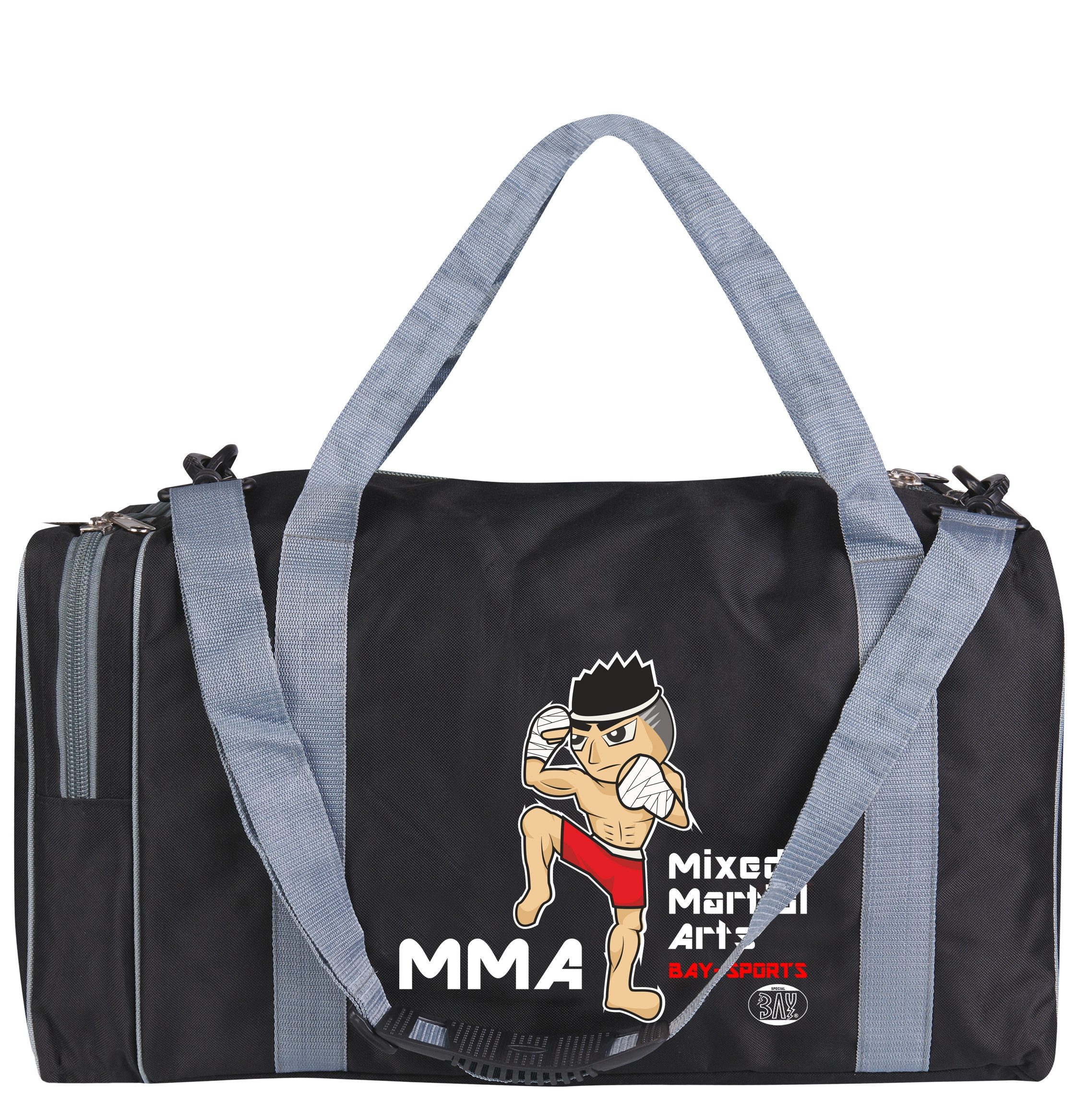 Für die kleinen Nachwuchsfighter ist diese Kinder-Sporttasche von BAY Kampfsportartikel genau das Richtige! Mit ihrem aufgeweckten Design begeistert sie Mädchen und Jungs gleichermaßen. Die Abmessungen von ca. 50 x 25 x 28 cm bieten ausreichend Platz für alle benötigten Sportutensilien. Die Tasche verfügt über ein geräumiges Hauptfach sowie ein praktisches Seitenfach, um eine ordentliche Aufbewahrung zu gewährleisten. Zusätzlich zu den Handgriffen ist ein verstellbarer Schultergurt vorhanden, der den Transport der Tasche bequem macht, egal ob über der Schulter oder in der Hand getragen. Hergestellt aus solidem und qualitativ hochwertigem Nylonmaterial, ist diese Sporttasche robust und strapazierfähig. Sie hält den Belastungen des aktiven Sports stand und bietet eine zuverlässige Aufbewahrungsmöglichkeit für die Ausrüstung der kleinen Sportlerinnen und Sportler.