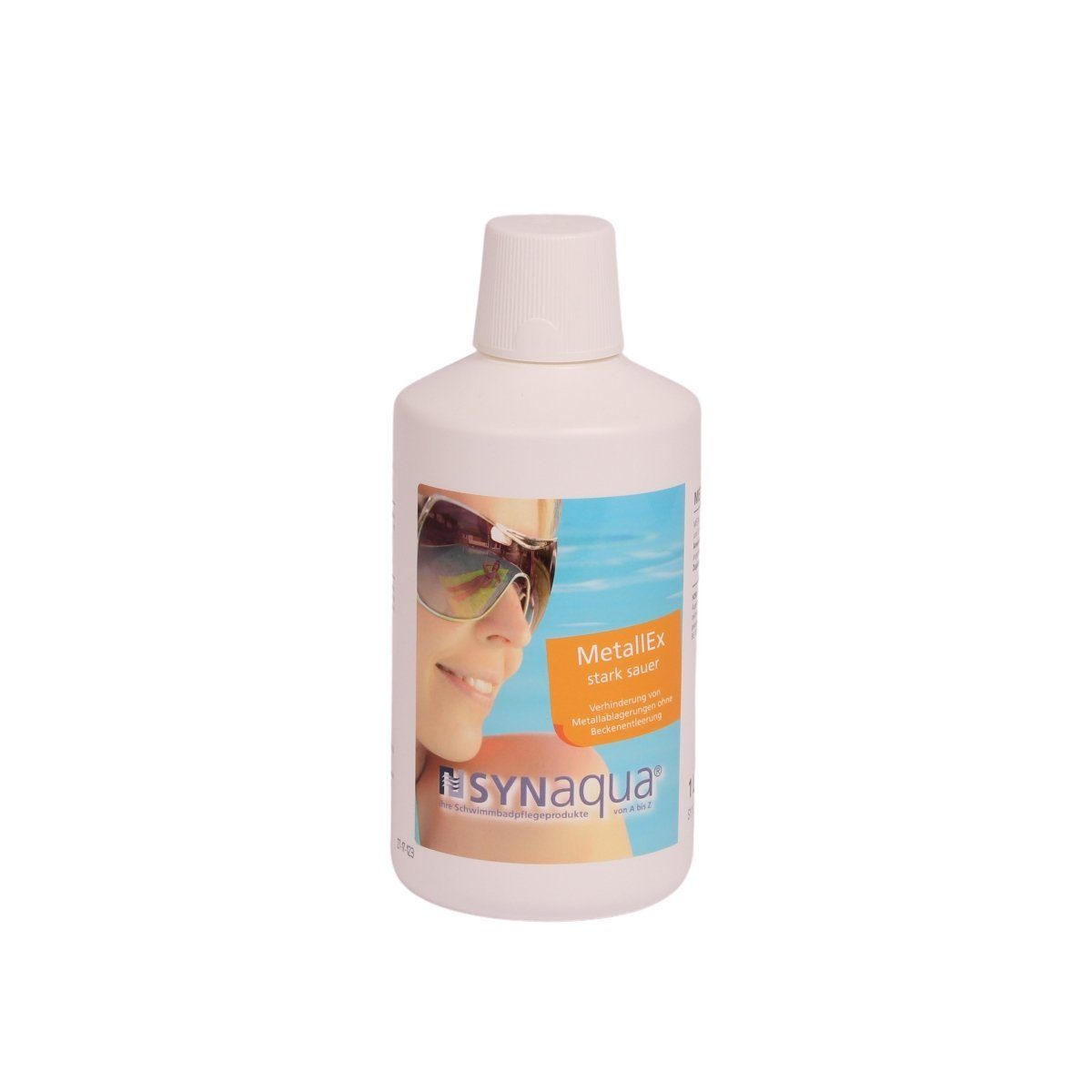 SYNaqua Metall-Ex entfernt Metall- und Kalkablagerungen von Beckenböden und Beckenwänden, ohne dass Ihr Schwimmbad entleert werden muss. Somit werden z.B. Eisen, Kupfer, Silber und Calzium entfernt und kristallisiert. Anschließend setzen sich diese im Filter ab und können durch eine Rückspülung entfernt werden. Selbst trockene Ablagerungen werden somit entfernt und die Gesamthärte im Becken gesenkt.