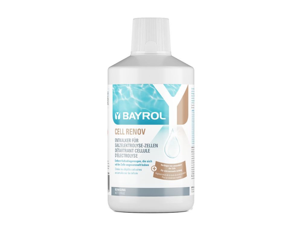 Cell Renov ist ein starker Flüssigentkalker der speziell für Schwimmbecken mit Salzelektrolyse entwickelt wurde. Kalkablagerungen an den Zellenblättern können mithilfe von Cell Renov schnell und einfach entfernt werden. Die meisten Salzelektrolyse-Analgen verfügen zwar über ein automatisches Reinigungssystem das Kalkablagerungen an den Elektroden vorbeugt, allerdings ist dies bei sehr hartem Wasser oft nicht ausreichend weshalb die Zelle regelmäßig gereinigt werden sollte um die maximale Leistung der Elektrolyse Zelle wiederherzustellen.