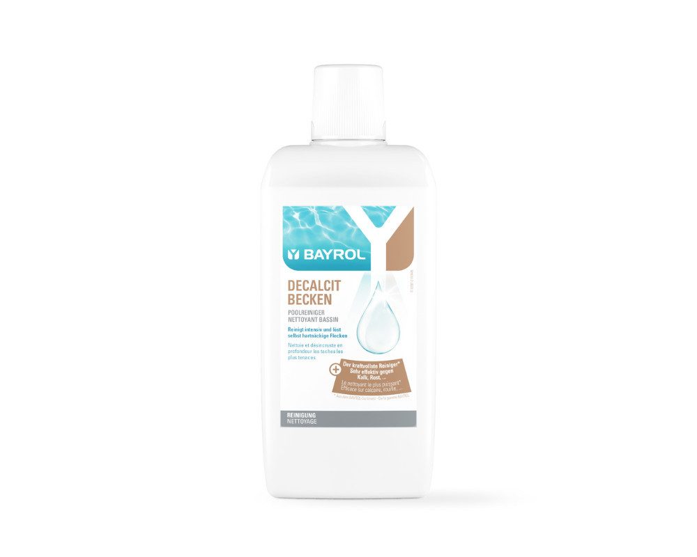 Bayrol Decalcit Becken beseitigt selbst hartnäckige Kalk- und Schmutzablagerungen. Durch die neue, dickflüssige Rezeptur wird die Einwirkzeit verlängert, der Reinigungserfolg ist sichtbar besser. Besonders geeignet zur Grundreinigung des entleerten Beckens.