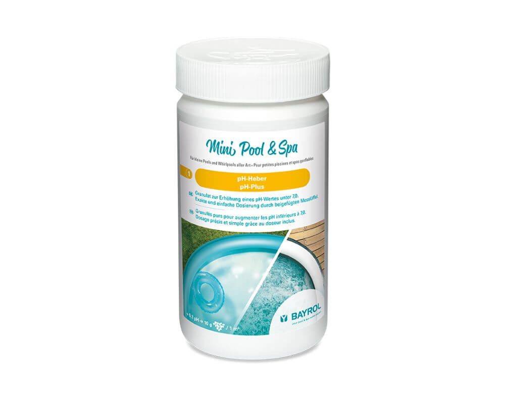 BAYROL pH-Heber ist ein hochwirksames Granulat zur Erhöhung des pH-Werts in Poolwasser, wenn dieser unter 7,0 liegt. Das konzentrierte, alkalische Pulver enthält Natriumcarbonat und ist mit allen gängigen Desinfektionsmethoden kompatibel. Die Dosierung erfolgt präzise mit dem beigefügten Messlöffel, wodurch eine exakte Einstellung des optimalen pH-Werts zwischen 7,0 und 7,4 ermöglicht wird.