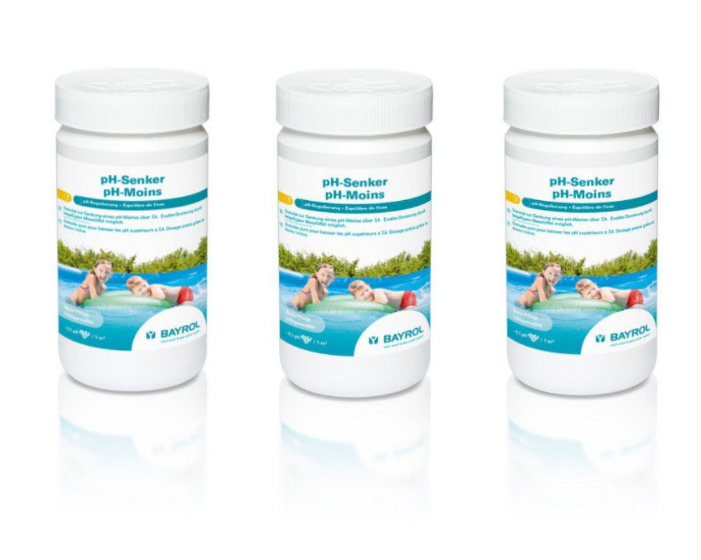 BAYROL pH-Minus 1,5 kg wird zum Senken des pH-Wertes von Schwimmbadwasser eingesetzt. Eine wirksame Desinfektion des Schwimmbadwassers setzt einen pH-Wert im Mittel von 7,0 – 7,4 voraus. Das leichtlösliche Granulat ist einfach zu handhaben. Die SET Zusammenstellung enthält 3 Dosen pH-Senker mit jeweils 1,5 kg.