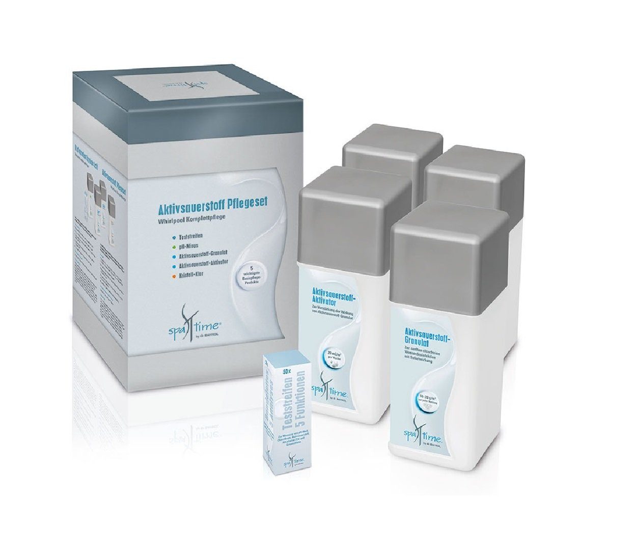 Mit diesem Set bekommen Sie alles, was Sie zur Desinfektion Ihres Whirlpools mit Aktiv-Sauerstoff brauchen.