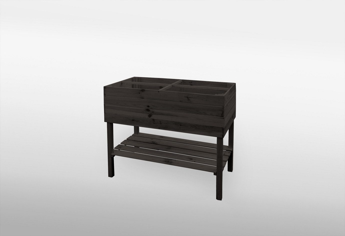 Das Kräuterbeet ist die perfekte Ergänzung auf jedem Balkon oder jeder Terrasse. Die gesamte Oberfläche ist wetterfest imprägniert, sodass selbst Regenwetter keinerlei Schaden anrichten kann. Das schlichte und recht dunkel gestaltete Design passt daher perfekt in jeden Garten oder auch auf jeden Balkon. Das Kräuterbeet steht auf vier stabilen und besonders standfesten Beinen. Das gesamte Kräuterbeet ist aus hochwertigem Kiefernmassivholz gefertigt und in einem harmonischen anthrazit gestaltet. Bei der verwendeten Ware handelt es sich um FSC® zertifizierte Ware, wobei besonders auf die Еко-товари und das Bestehen der Wälder geachtet wird. Das Hochbeet beansprucht schließlich nicht viel Platz und kann daher sehr individuell an beinahe jedem Ort eingesetzt werden. Außerdem verfügt das Hochbeet bereits über alles, was zum Pflanzen von Kräutern benötigt wird: Das Hochbeet wird bereits mit einer Pflanzfolie geliefert, sodass Sie direkt mit dem Bepflanzen beginnen können. Zudem verfügt das Hochbeet über eine Ablage unter dem eigentlichen Beet.