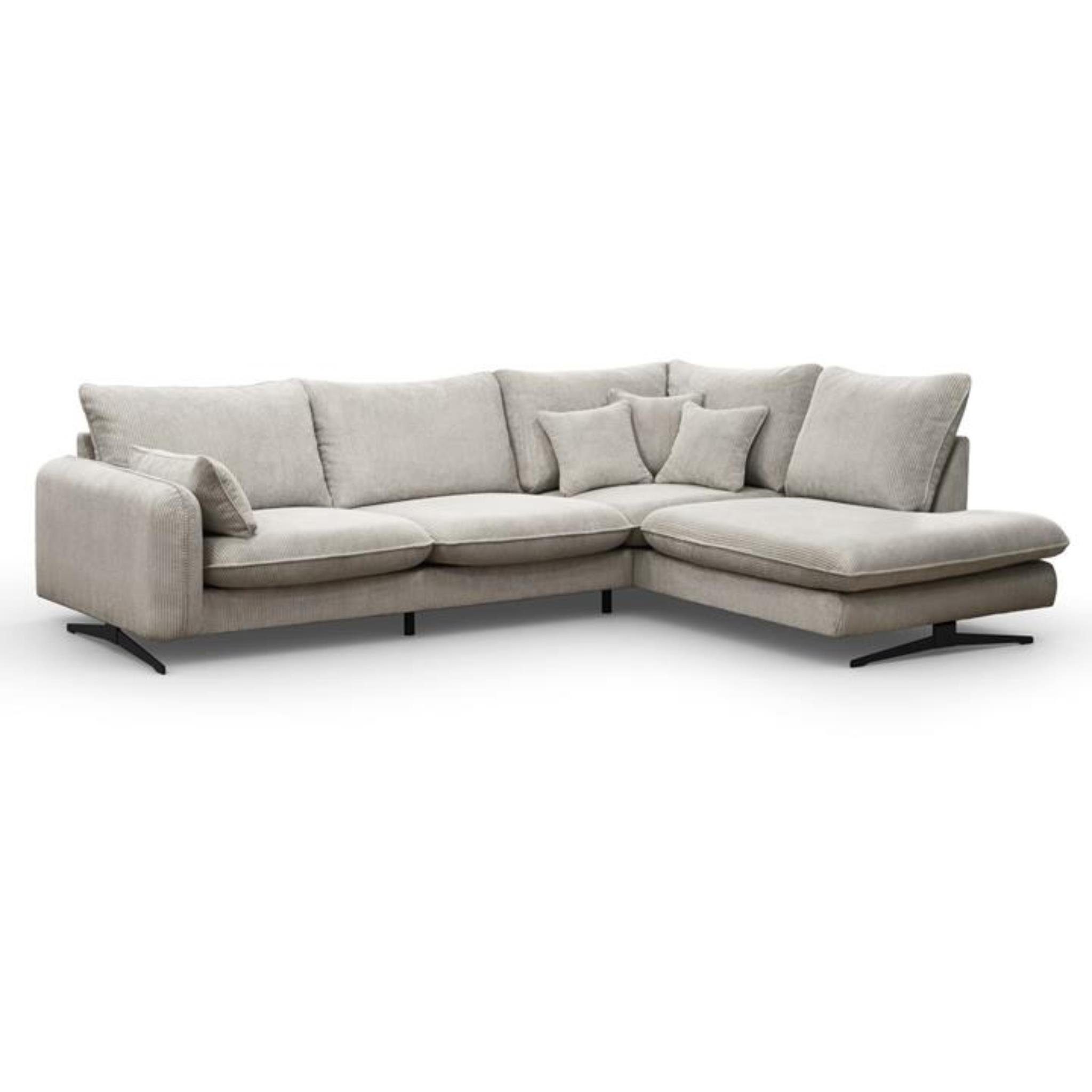 Wir präsentieren Ihnen das l-shape Ecksofa mit Wellenfedern Prince L, das auf harmonische Weise luxuriöses Design mit unvergleichlichem Komfort verbindet. Das sind raffinierte Möbel, die Ihrem Interieur eine moderne Eleganz verleihen. Der Sitz des Corner Sofas in l-form Prince L ist mit innovativen Wellenfedern ausgestattet, die für unvergleichlichen Komfort bei jeder Entspannung sorgen. Die Rücken- und Sitzkissen des l-förmiges Ecksofa für Wohnzimmer Prince L zeichnen sich nicht nur durch ihre ergonomische Form, sondern auch durch die Verwendung von Schlössern aus. Die Einzigartigkeit des L-Form Ecksofas im modernes Stil Prince L wird durch die dekorativen Metallbeine betont, die den Möbeln Leichtigkeit und einen modernen Charakter verleihen. Jedes Bein wurde sorgfältig gefertigt, um ein einzigartiges Dekorelement zu schaffen, das die Ästhetik des Sofas erhöht. Ein zusätzlicher Vorteil des Ecksofas Prince L ist die Möglichkeit, die Eckseite zu wählen, wodurch Sie das Möbelstück an die individuellen Bedürfnisse und die Anordnung des Raumes anpassen können. Ganz gleich, ob Sie sich für die rechte oder die linke Seite entscheiden, das Prince L Sofa mit gepolsterter Rückenlehne wird mit Sicherheit zum Mittelpunkt Ihres Wohnzimmers und verbindet Funktionalität mit Design Raffinesse.