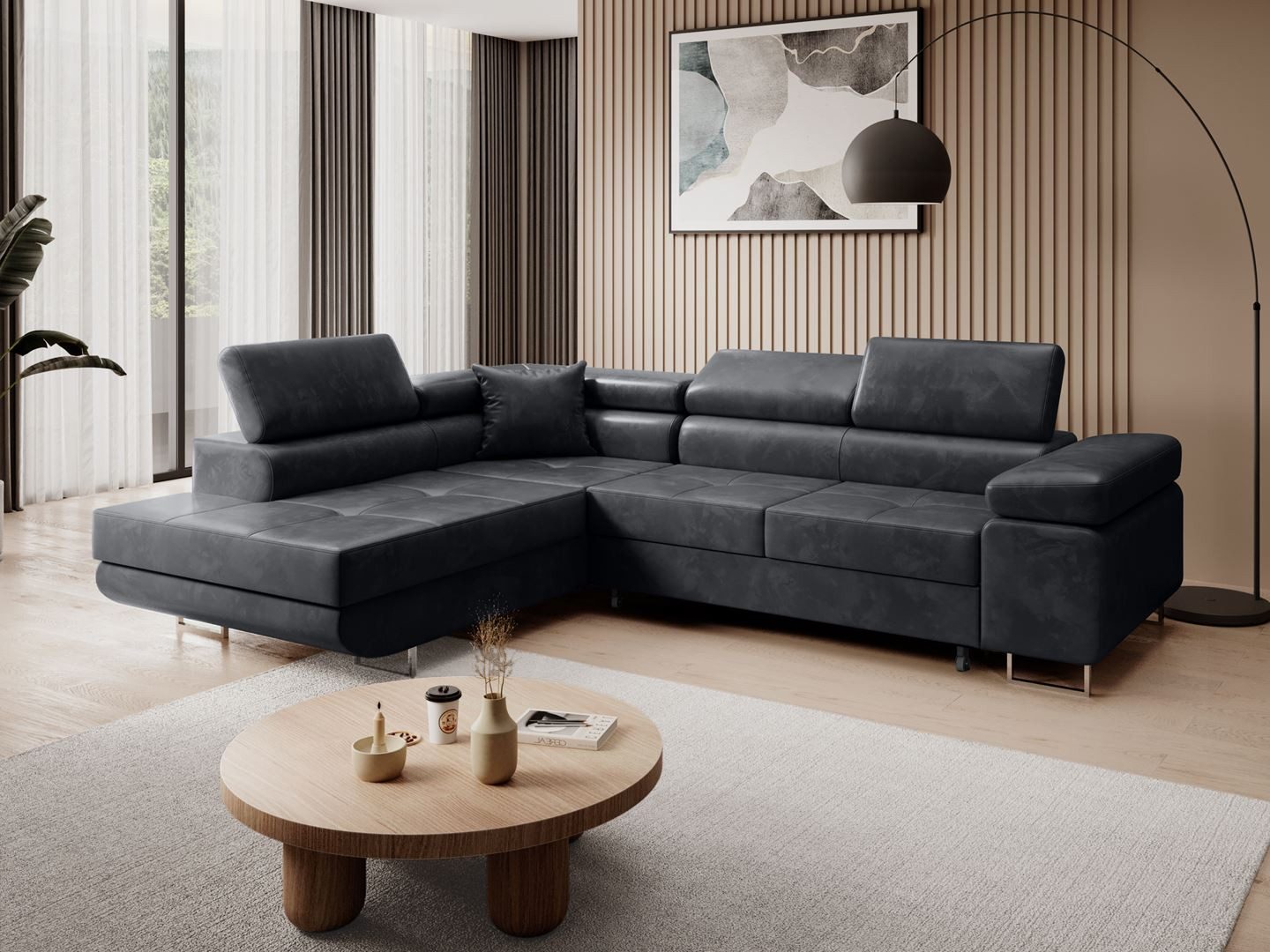 Die L-Form Ecke Waldo besticht nicht nur durch ihr anmutiges Design, sondern auch durch hochwertige Komponenten in Verbindung mit höchster Verarbeitungsqualität! Das Ecksofa l-förmig Waldo bietet dank der Wellfeder in der Füllung und dem Easy Sleep System wahrhaft königlichen Nutzungskomfort. Der DL-Mechanismus zum einfachen Aufklappen verwandelt das Ecksofa L Waldo ganz einfach in ein Tagesbett mit einer Liegefläche von 195 x 125 cm und einem Behälter für Bettzeug. Das Möbelstück wird das geräumige Interieur wunderbar ergänzen, denn sein leicht massiver Korpus wird die Aufmerksamkeit der Gäste auf sich ziehen und eine gemütliche Sitzecke schaffen. Das L-förmiges Ecksofa Waldo bietet zudem bewegliche Kopfstützen, die den Komfort bei nächtlichen Filmmarathons deutlich erhöhen.