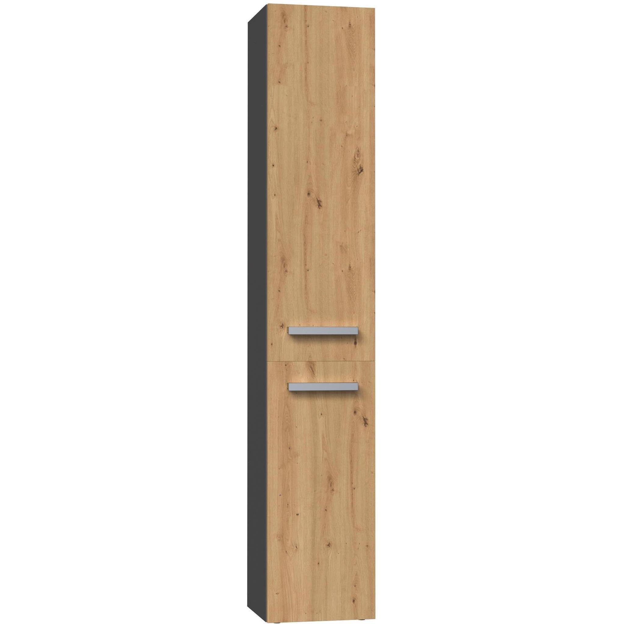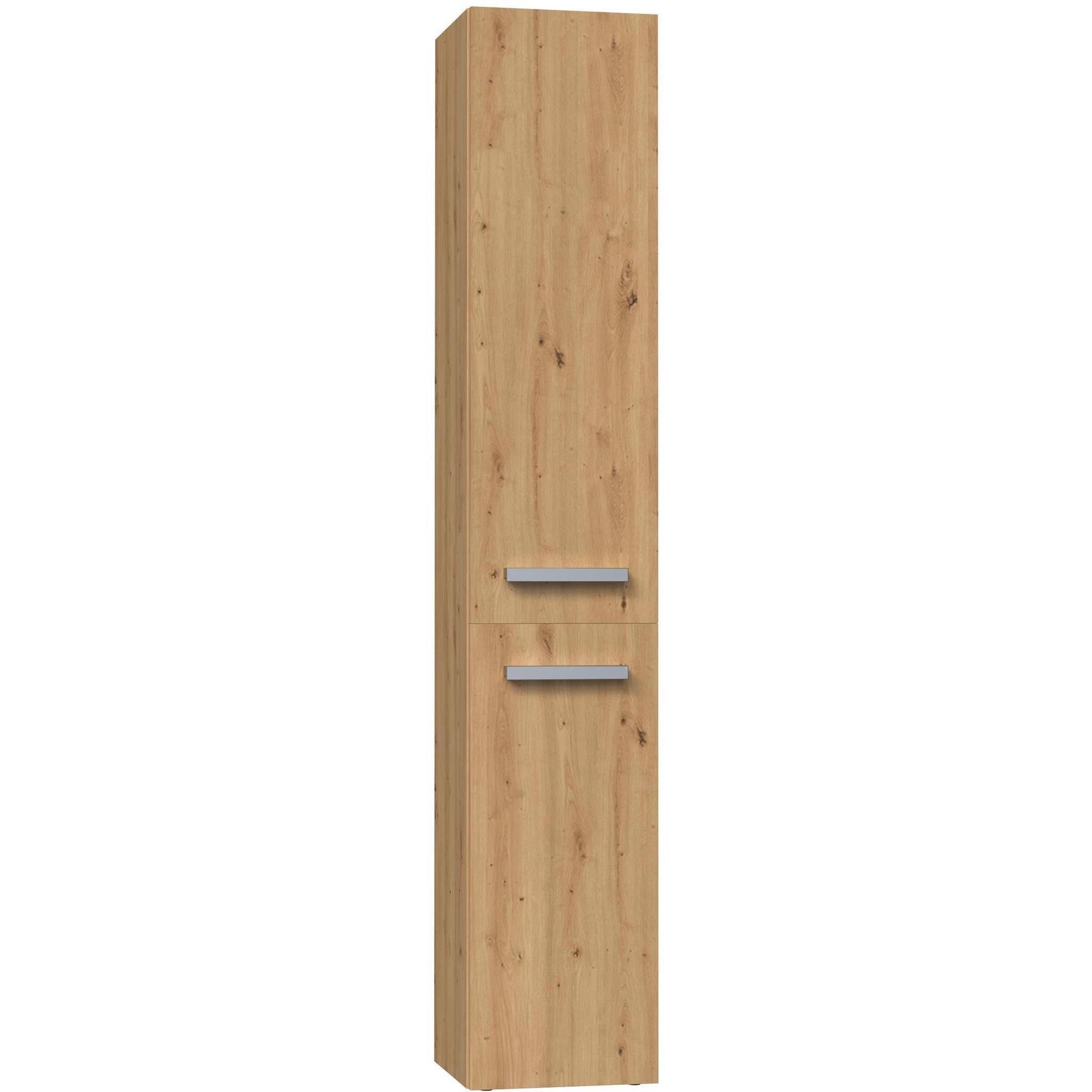 Dieser elegante 31 cm breit Badezimmerschrank Nelson II ist eine ausgezeichnete Lösung für diejenigen, die Funktionalität in Verbindung mit Ästhetik suchen. Der Mast ist mit fünf Regalen ausgestattet Es ist der perfekte Ort, um schöne Handtücher, dekorative Kosmetika oder Dekorationsgegenstände auszustellen und einen subtilen dekorativen Akzent hinzuzufügen. Zwei Drehtüren schließen das elegante Innere des Pfostens und bieten Diskretion und Schutz vor Feuchtigkeit und Staub. Durch die schlanke Konstruktion öffnet sich die Tür sanft und ermöglicht einen einfachen Zugriff auf die gespeicherten Inhalte. Das minimalistische Design der Säule fügt sich perfekt in moderne Arrangementtrends ein.