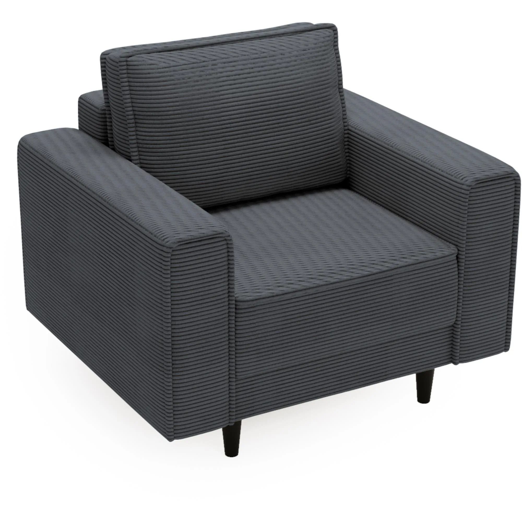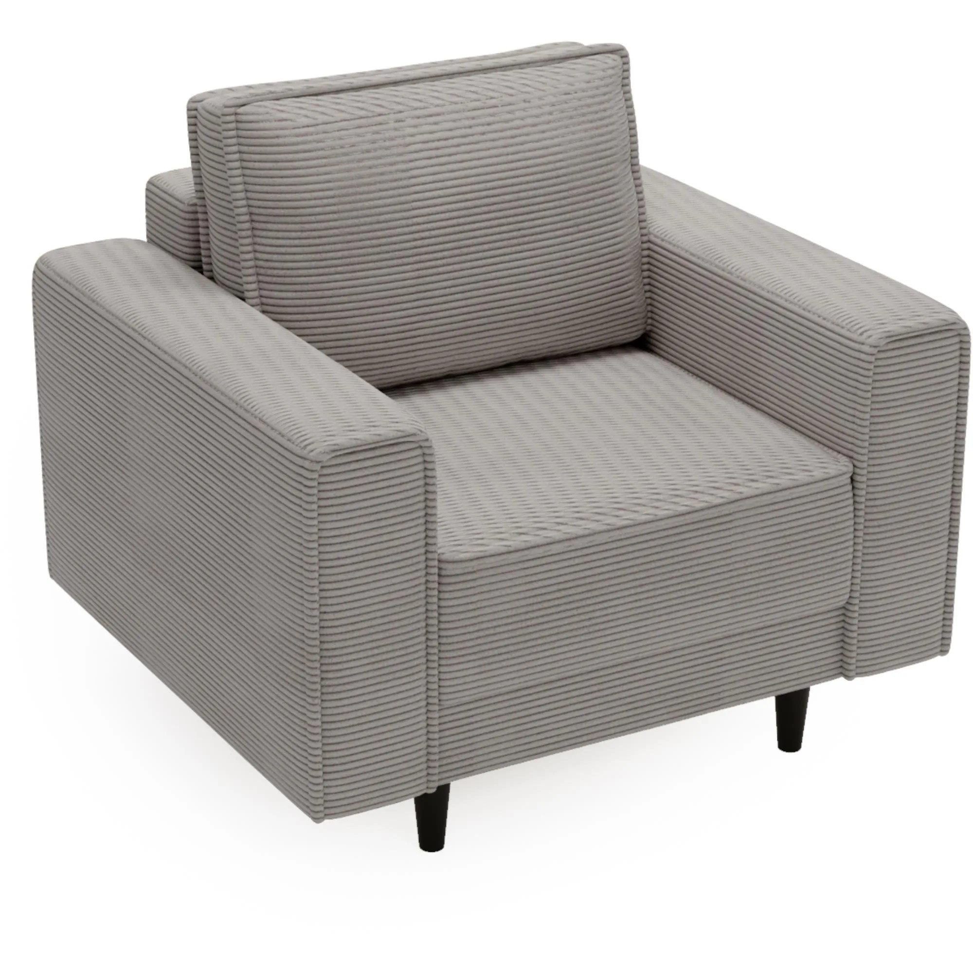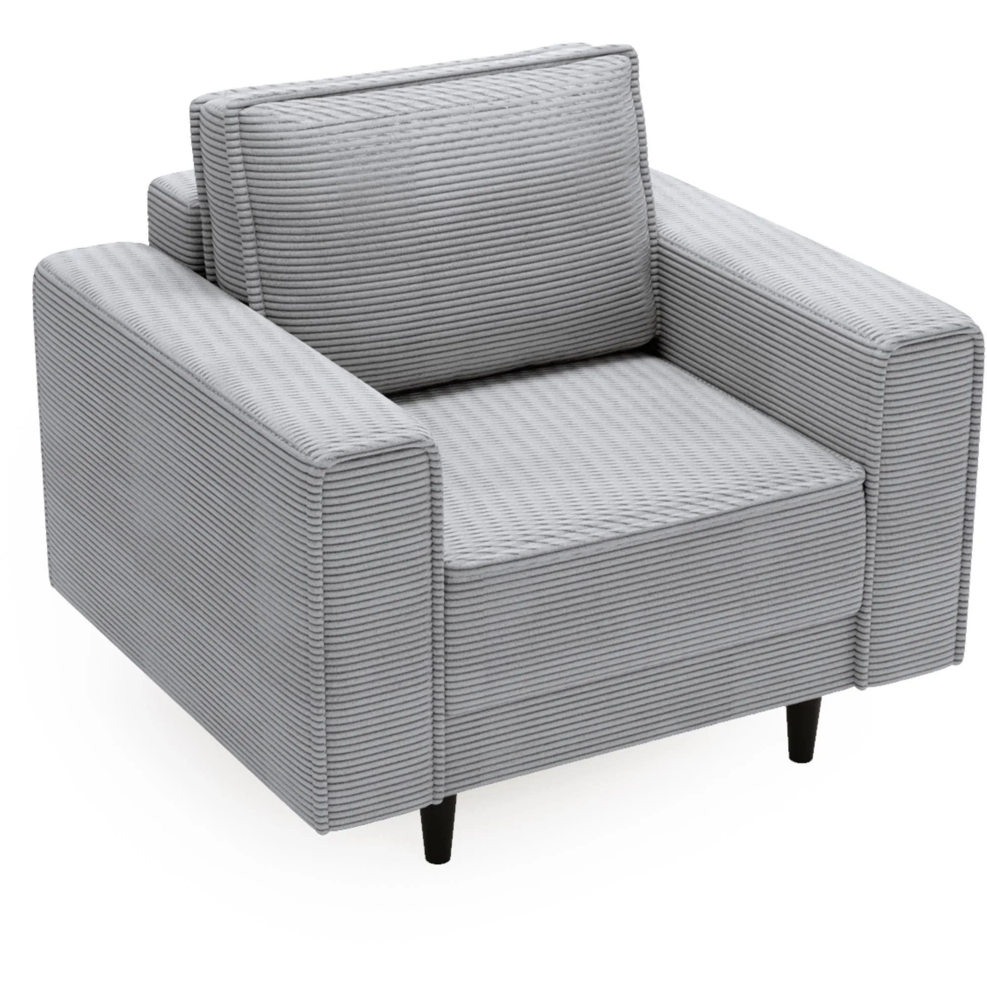 Grau Relaxsessel Monte mit einzigartigem Design und unvergleichlichem Komfort. Sein elegantes Aussehen und seine angenehme Textur machen es zu einem perfekten Begleiter für Momente der Ruhe und Entspannung. Der Cordstoff verleiht ihm einen einzigartigen Charakter und ist gleichzeitig langlebig und leicht zu reinigen. Der 105 cm Sessel Monte basiert auf stabilen, schwarzen Holzbeinen, die ihm Stabilität und Eleganz verleihen. Das Holz wurde sorgfältig verarbeitet, um den natürlichen Charme des Materials zu betonen. Das Hauptmerkmal dieses Stuhls ist sein Sitz, der auf einer Wellenundterfederung basiert. Die Wellenfedern passen sich Ihrem Körper an und bieten unvergleichlichen Komfort und Unterstützung beim Sitzen. Mit seinem einzigartigen Design, Komfort und Haltbarkeit wird dieser Sessel Monte zu einem Lieblingsplatz, um sich in Ihrem Inneren zu entspannen.
