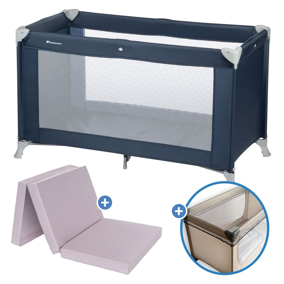 Lieferumfang | Bebeconfort Reisebett Soft Dreams mit Matratze inkl. Transporttasche - Tinted Graphite Alvi Reisebettmatratze Komfort - 60 x 120 cm / Höhe 6 cm inkl. Transporttasche - Grau ZAMBOO Universal Insektenschutz / Mückennetz für Baby-Reisebetten - Grau |