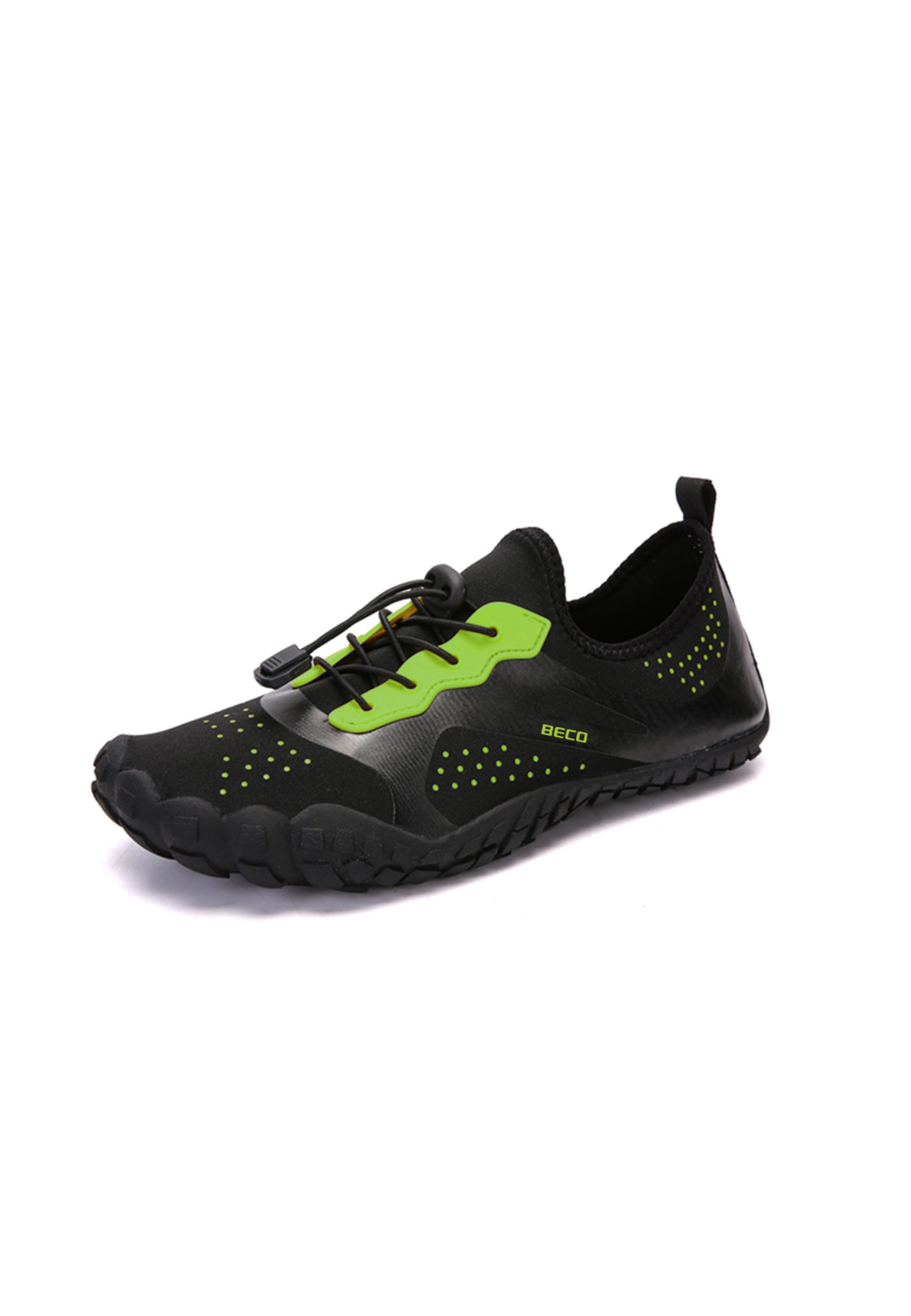 Der BECO Aqua-/Barfußschuh "AquaVenture" vereint authentisches Barfußgefühl mit Komfort und Schutz – ideal für Aktivitäten an Wasser und Land. Erlebe ein neues Verbundenheitsgefühl mit deiner Umwelt: Die ultradünne Sohle dieser Minimalschuhe lässt dich den Boden hautnah spüren und verleiht deinen Füßen ein echtes Barfußgefühl. Eine breite Zehenbox ermöglicht es deinen Zehen, sich in ihrer natürlichen Position zu entfalten, was maximalen Komfort bei allen Aktivitäten bietet. Die flache, flexible Sohle unterstützt eine gesunde Körperhaltung und kann langfristig Knie-, Hüft- und Rückenschmerzen lindern. Dank des durchdachten Drainagesystems trocknen deine Füße schnell nach dem Kontakt mit Wasser, und das atmungsaktive Obermaterial sorgt für effektive Wärmeableitung und verhindert unangenehmes Schwitzen. Die robuste, aber flexible Sohle schützt zuverlässig vor Verletzungen durch Steine, Scherben oder Schmutz. Die verstärkte Schnürsenkelführung mit Schnellverschluss-System (Quicklace) sorgt zudem für sicheren Halt und Schutz – für unbeschwerten Komfort bei all deinen Abenteuern.
