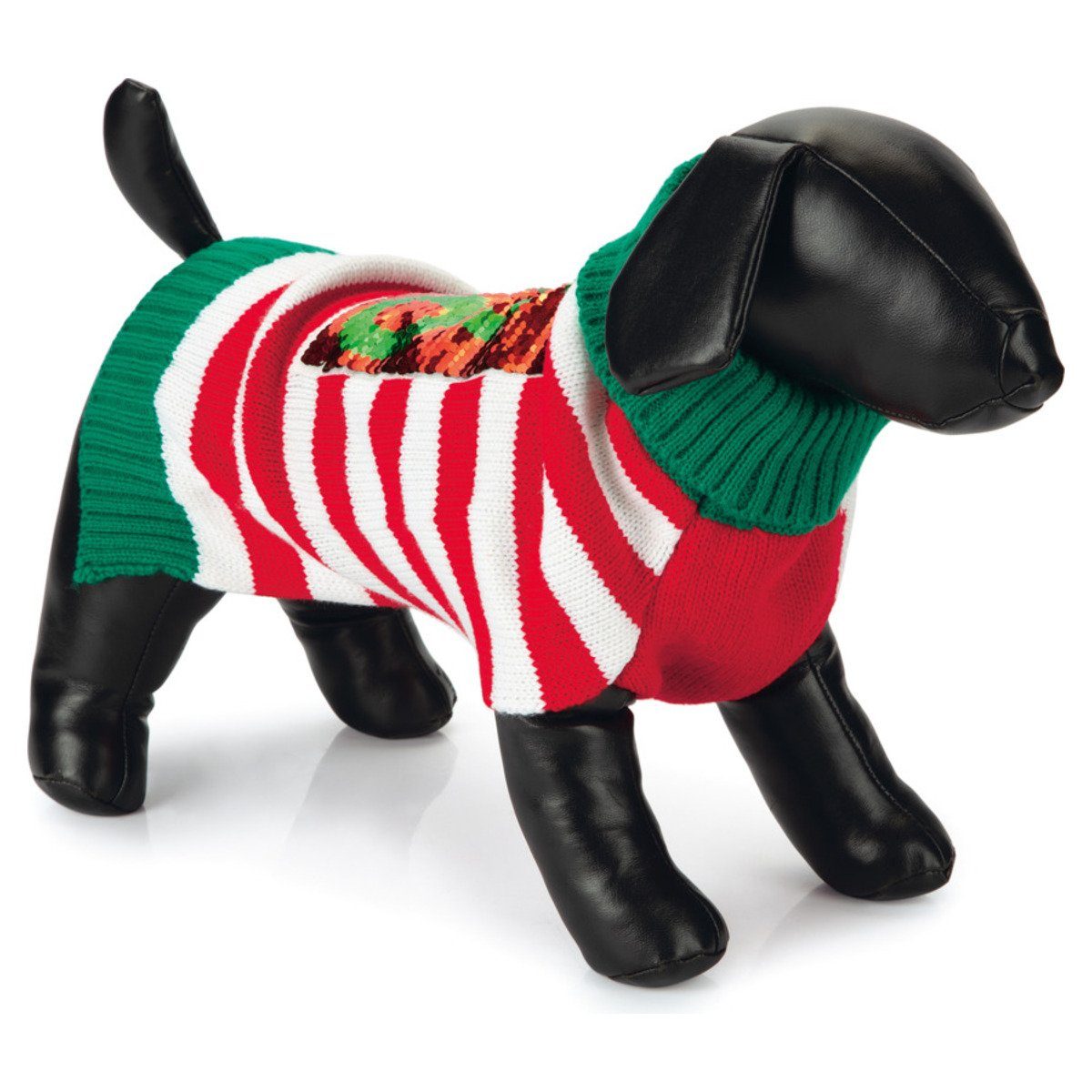 Es ist die schönste Zeit des Jahres… die einen kleiden sich für das Weihnachtsessen festlich, andere ziehen einen urigen Weihnachtspullover vor. Da soll auch das vierbeinige Familienmitglied nicht außen vor gelassen werden. Der Beeztees Weihnachtssweater HoHoHo kann variierend gestaltet werden. Mithilfe der Wendepailletten kann man je nach Vorliebe zwischen zwei Schriftzügen, nämlich ""HoHoHo"" oder "Falala", wählen. Der Pullover ist aus einem angenehm zu tragenden Material. Da freut man sich doch gleich noch mehr auf das Festagsessen und den gemeinsamen Auftritt mit Hund im Weihnachtslook.