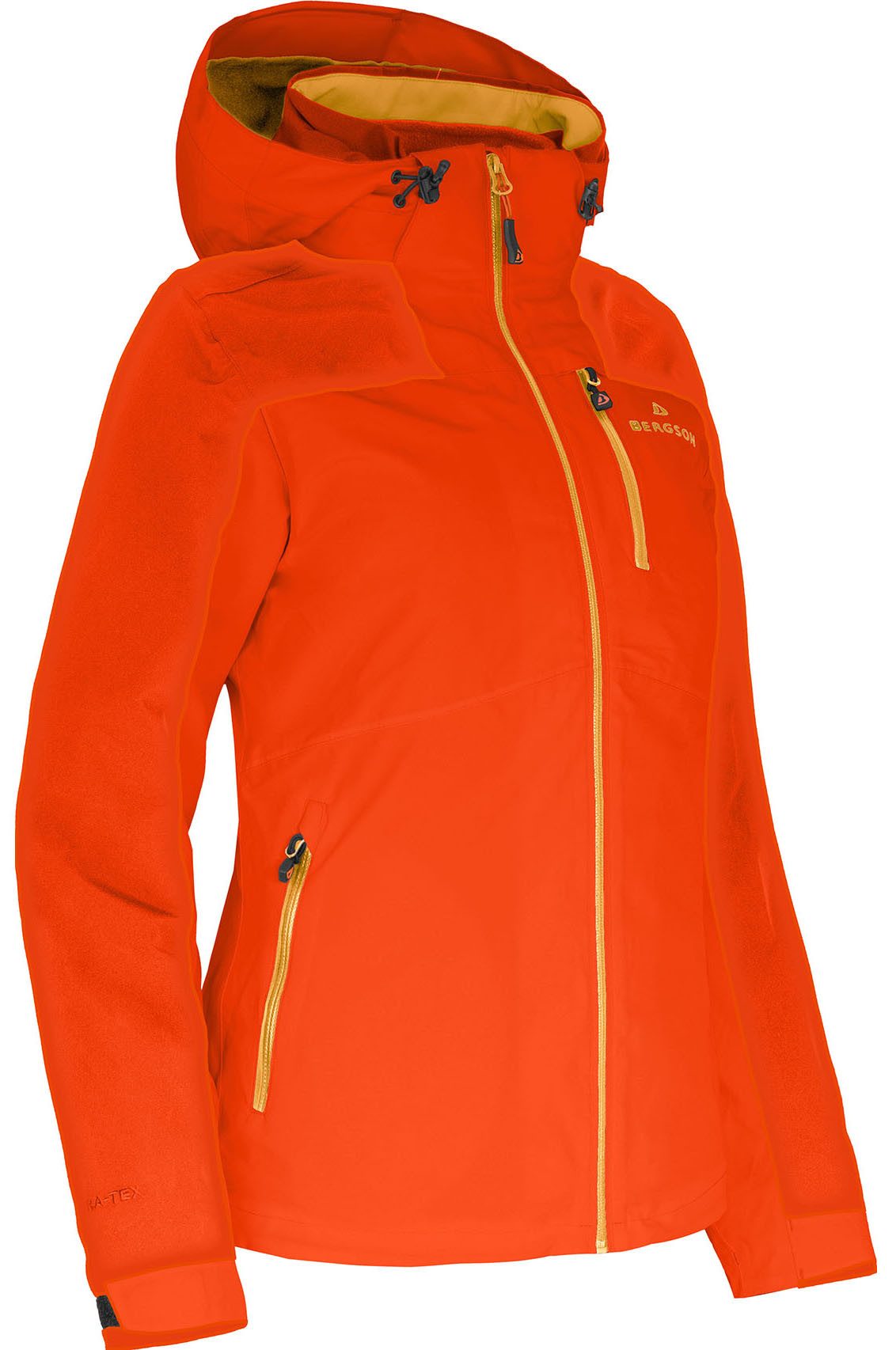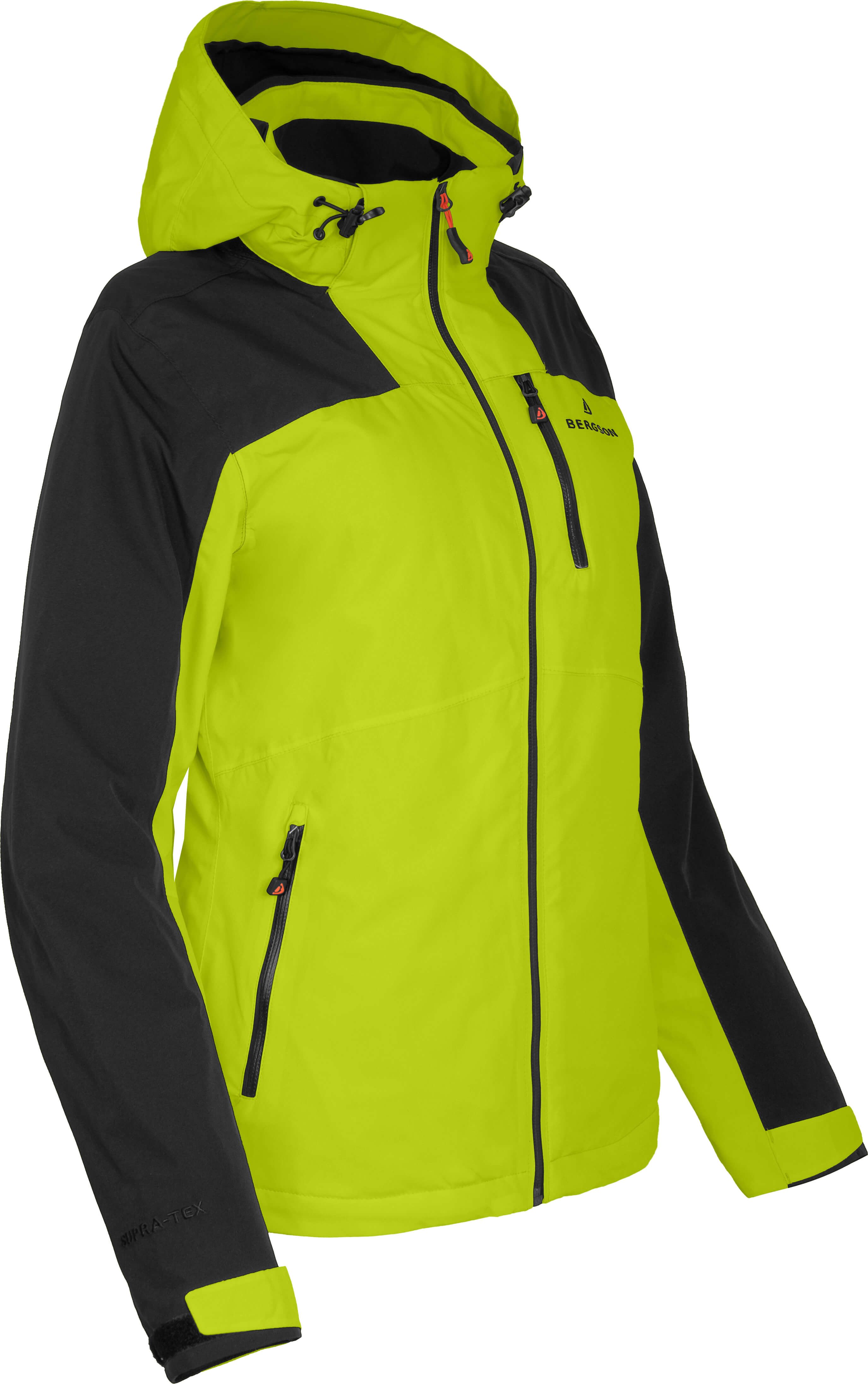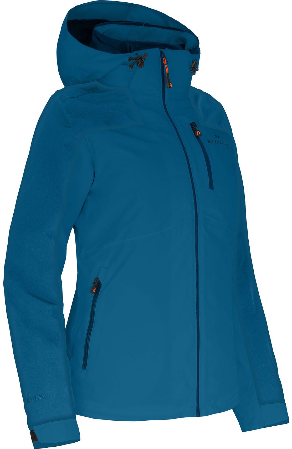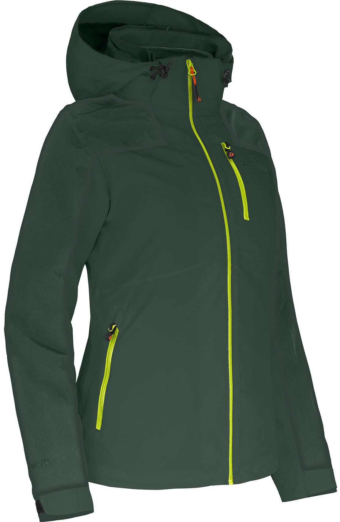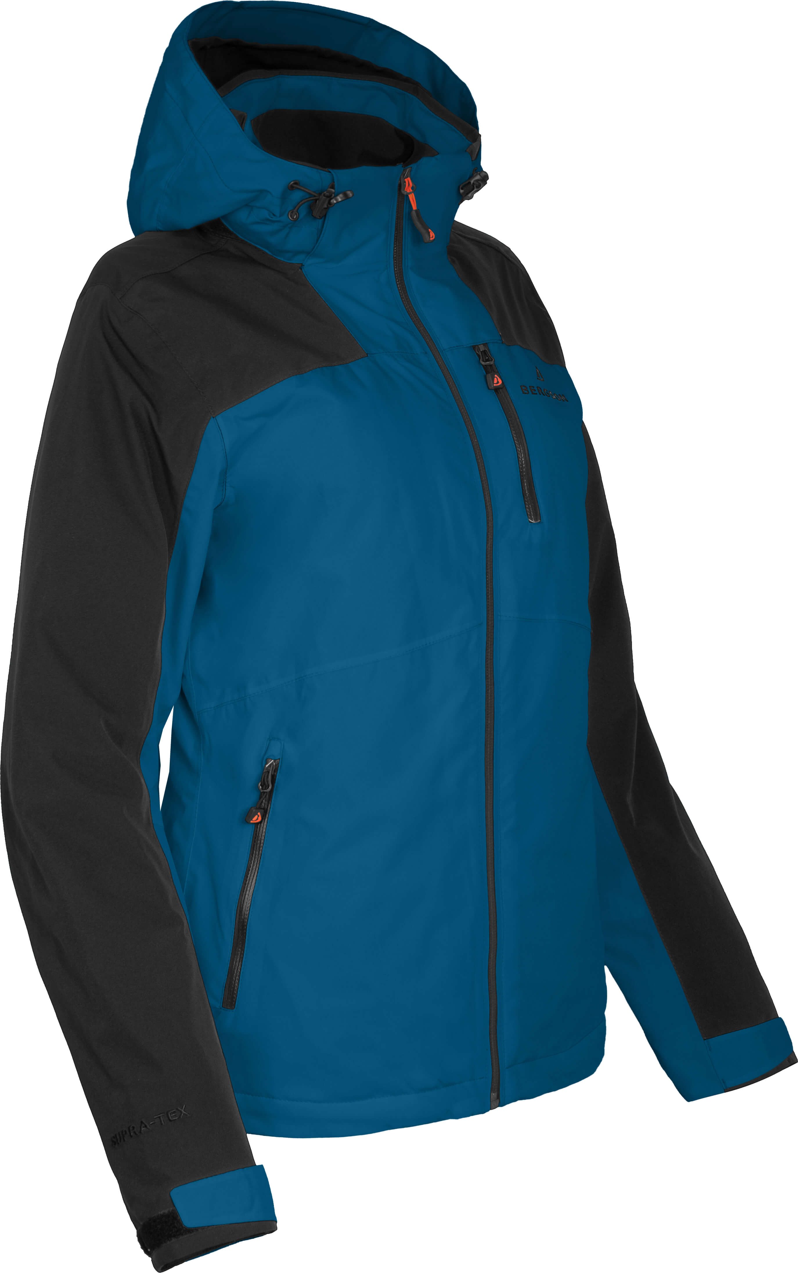 PFC-freie, elastische, leicht wattierte, winddichte, wasserdichte, atmungsaktive Damen Outdoorjacke. Bestens nutzbar als Wanderjacke, Fahrradjacke oder Regenjacke. Auch bei stärkstem Regen.