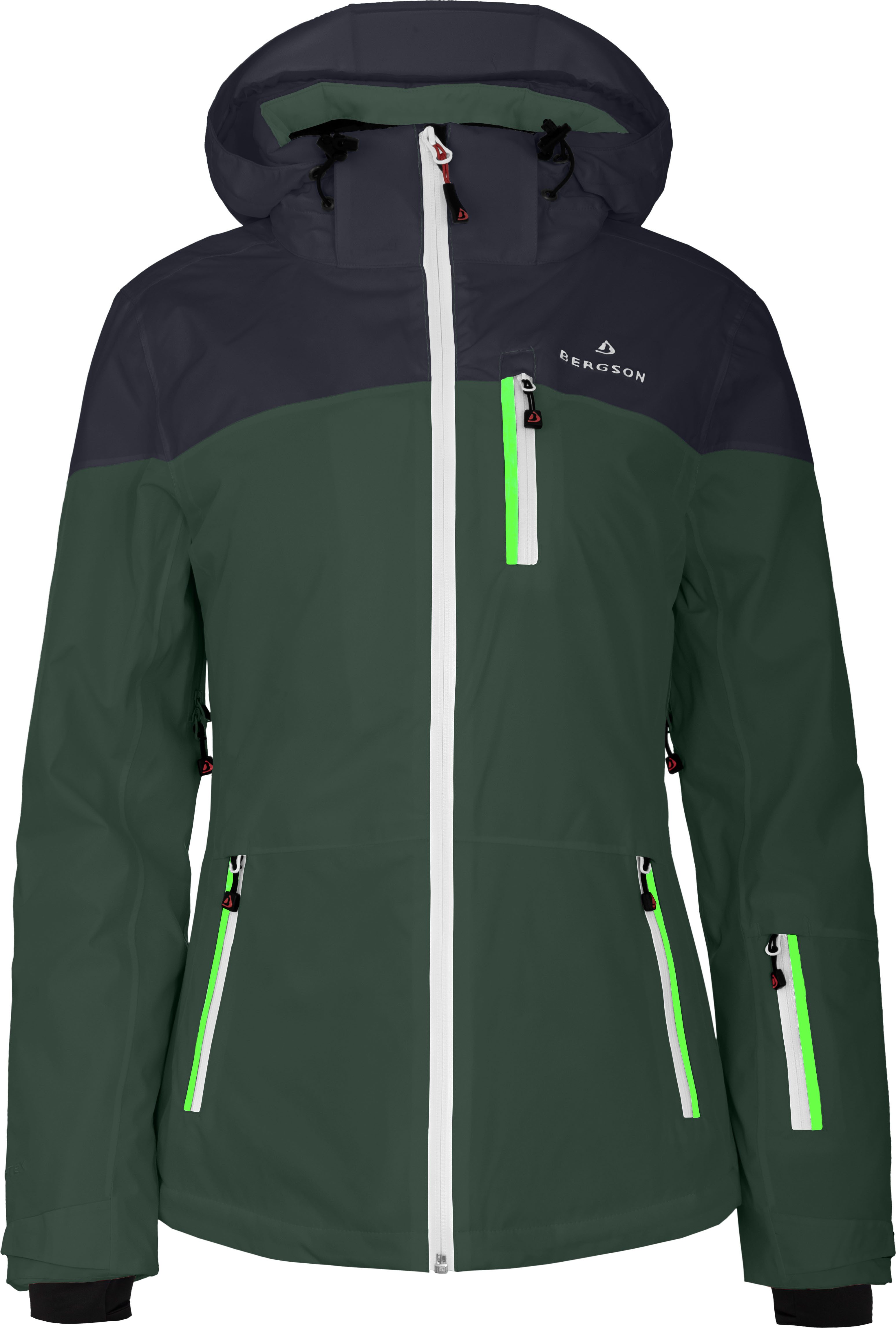 Sehr sportliche, bielastische, PFC-frei imprägnierte Damen Skijacke , mit extra langen Unterarm-Reißverschlüssen, die eine sehr gute Ventilation ermöglichen. Dank Supratex 20.000 Membrane ist die warm wattierte Skijacke winddicht und wasserdicht sowie atmungsaktiv. Die abnehmbare Kapuze bietet zusätzlichen Wetterschutz. Die Skijacke hat einen Schneefang, elastische Ärmelbündchen mit Daumenloch und wasserdichte Reißverschlüsse.