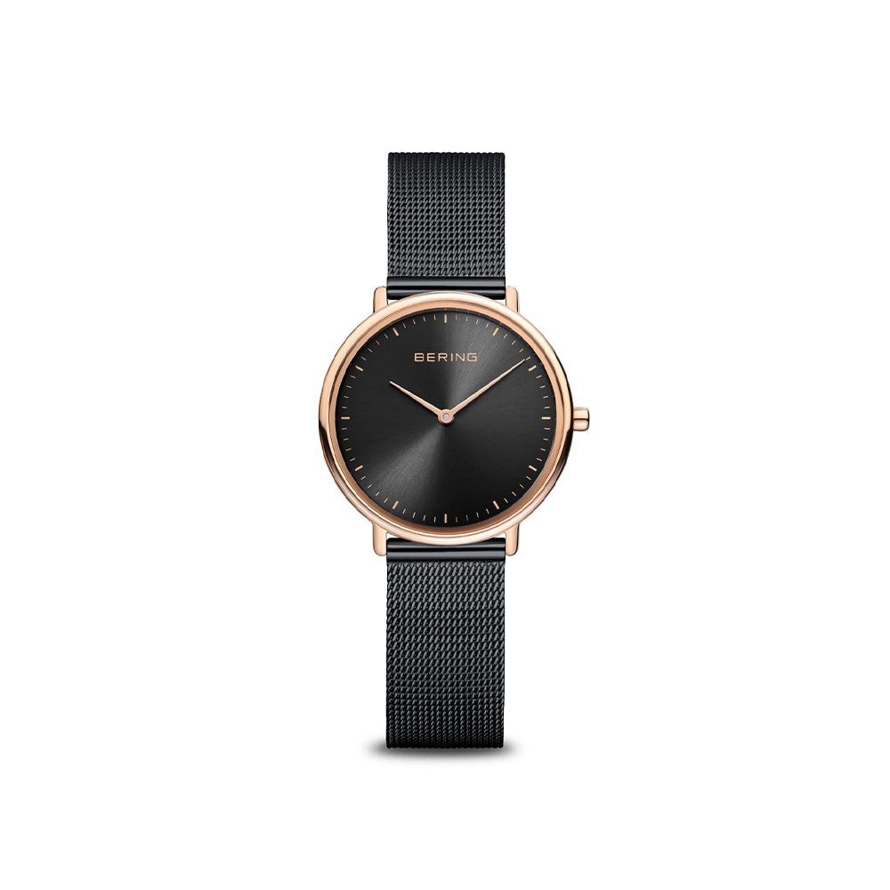 Die Bering Ultra Slim roségold glänzend (Artikelnummer: 15729-166) ist eine perfekte Kombination aus klassischem, puristischem Design und modernem Minimalismus. Diese Uhr überzeugt durch ihr extrem flaches Gehäuse und ihr zartes Aussehen, was sie zu einer der dünnsten Uhren auf dem Markt macht. Das roségold glänzende Edelstahlgehäuse harmoniert ideal mit dem schwarzen Zifferblatt im Sunray-Stil. Das schwarze Milanaise-Armband verleiht der Uhr eine elegante Note und sorgt für hohen Tragekomfort. Mit hochwertigem Saphirglas, das die Uhr vor Kratzern schützt, ist die Bering Ultra Slim roségold glänzend nicht nur ein optisches Highlight, sondern auch äußerst strapazierfähig.