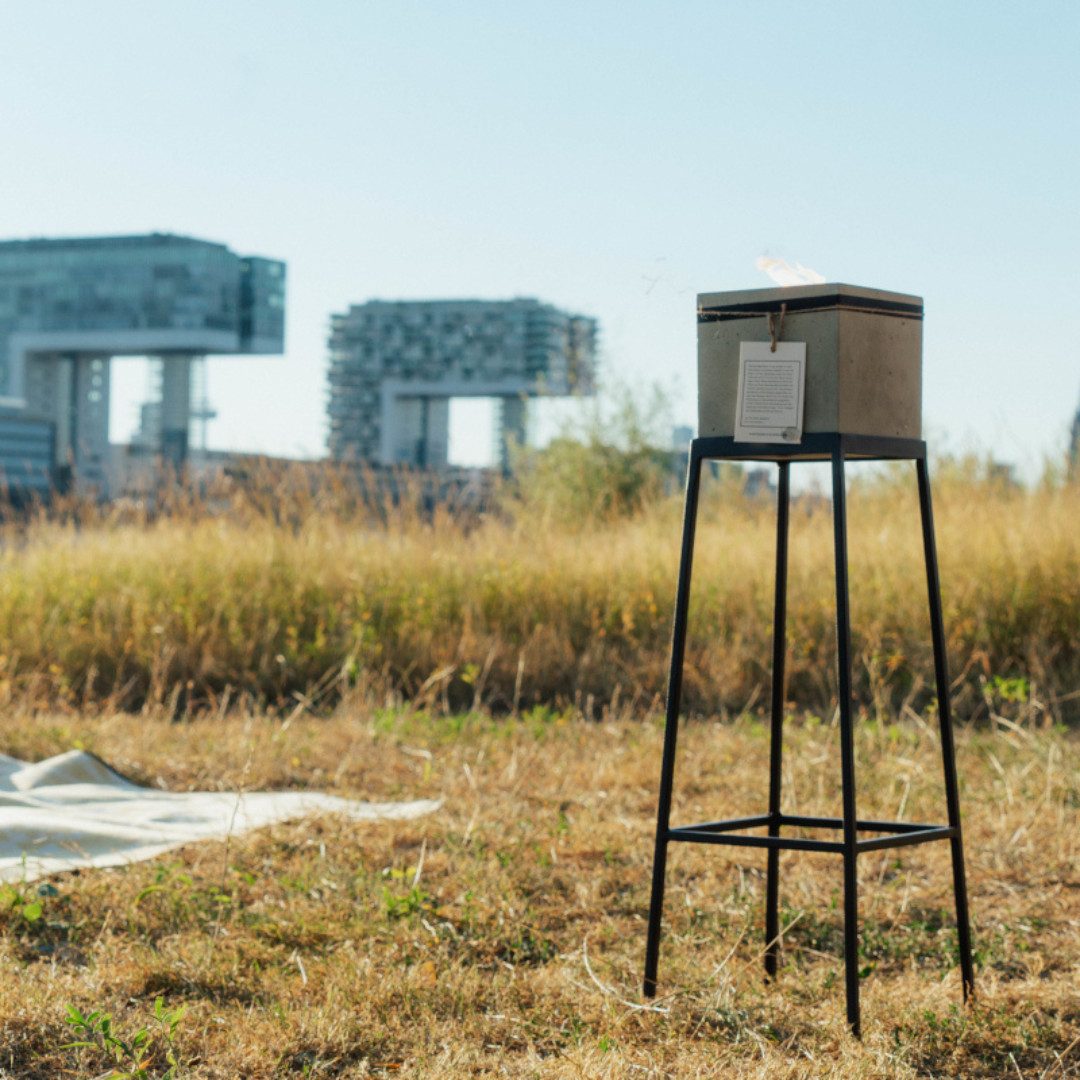 Lieferumfang | Betriebsbereites Betonfeuer Löschbrett Pulverbeschichteter Ständer Nachfüllwachs Anwendungshinweise |