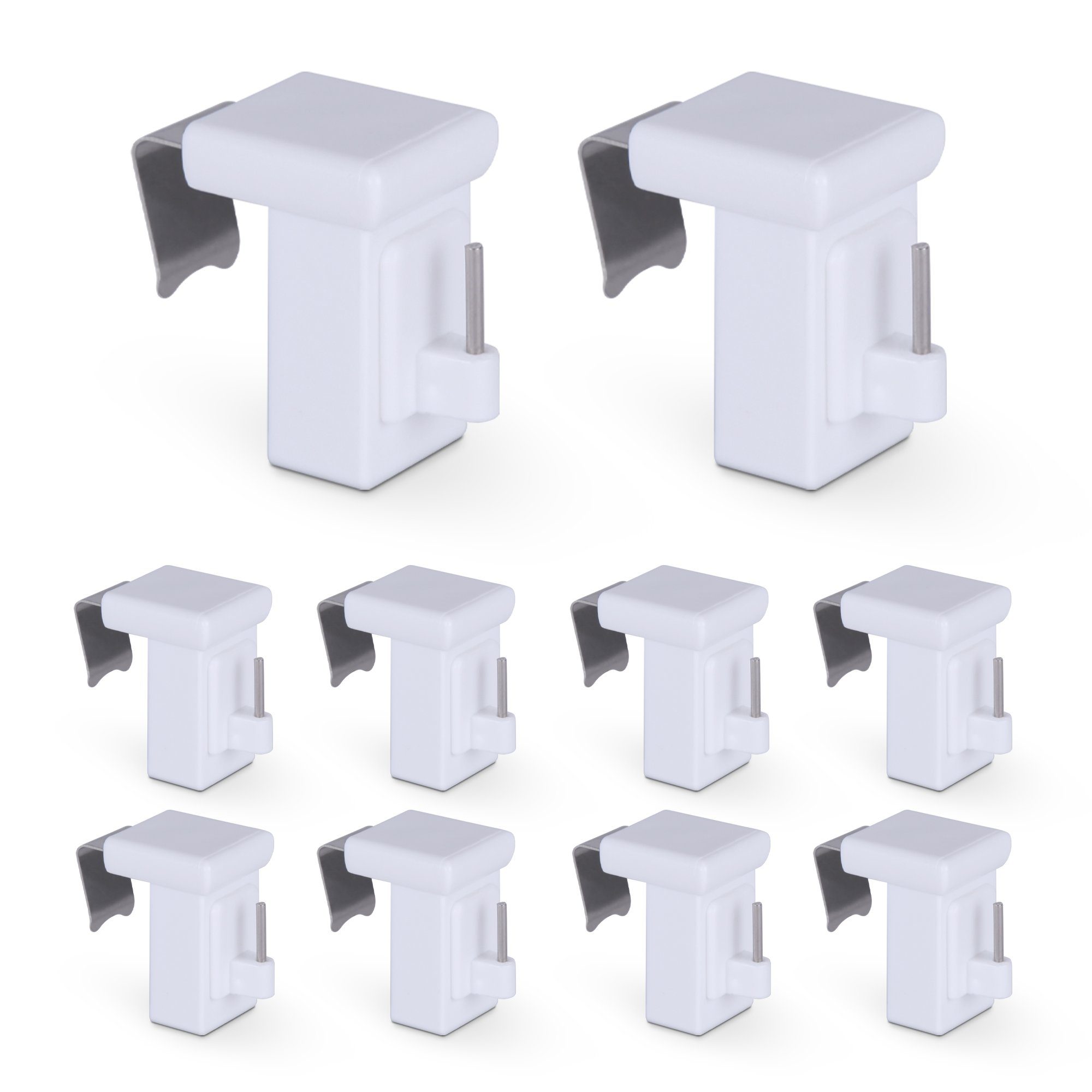 Die Klemmträger bestehen aus hochwertigem Kunststoff und bieten zuverlässigen Halt für Vitragestangen und Bistrogardinenstangen. Ob Scheibengardinen in der Küche, leichte Vorhänge im Wohnzimmer oder dekorative Sichtschutzlösungen – mit diesen Haltern gelingt die Montage schnell und unkompliziert, ganz ohne Werkzeug oder handwerkliches Geschick.