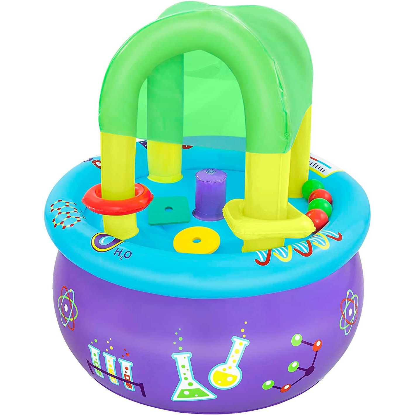 Der Bestway Lil' Learn Lab Wasserspieltisch bringt erfrischenden Wasserspaß in den Garten! Mit einem Durchmesser von 76 cm bietet er Kindern die perfekte Möglichkeit, spielerisch mit Wasser zu experimentieren. Die integrierten Wassersprinkler sorgen für eine angenehme Abkühlung und lassen sich einfach mit einem Gartenschlauch verbinden. Das Set enthält 4 Spielbälle, davon 2 mit Innenfach, sowie 2 Schaumstoff-Figuren und 2 Ringe für vielseitigen Spielspaß. Hergestellt aus strapazierfähigem PVC garantiert der Wasserspieltisch eine lange Lebensdauer. Falls doch einmal eine kleine Panne passiert, hilft der beiliegende Reparaturflicken schnell weiter.