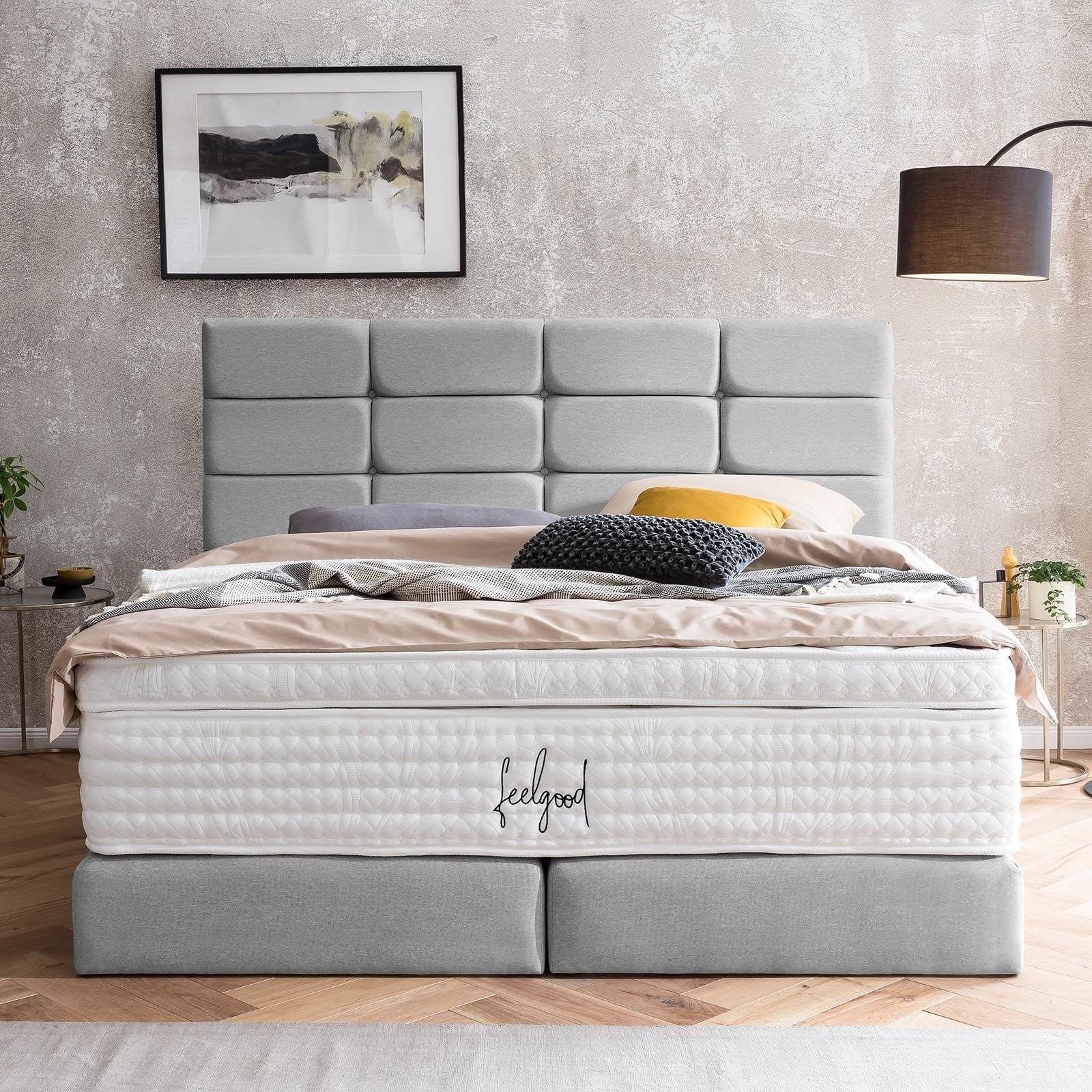 Ausstattung | 7-Zonen Taschenfederkern-Matratze Kopfteil hinten mit echtem Stoff bezogen Gleiterfüße Taschenfederkern-Unterbox |