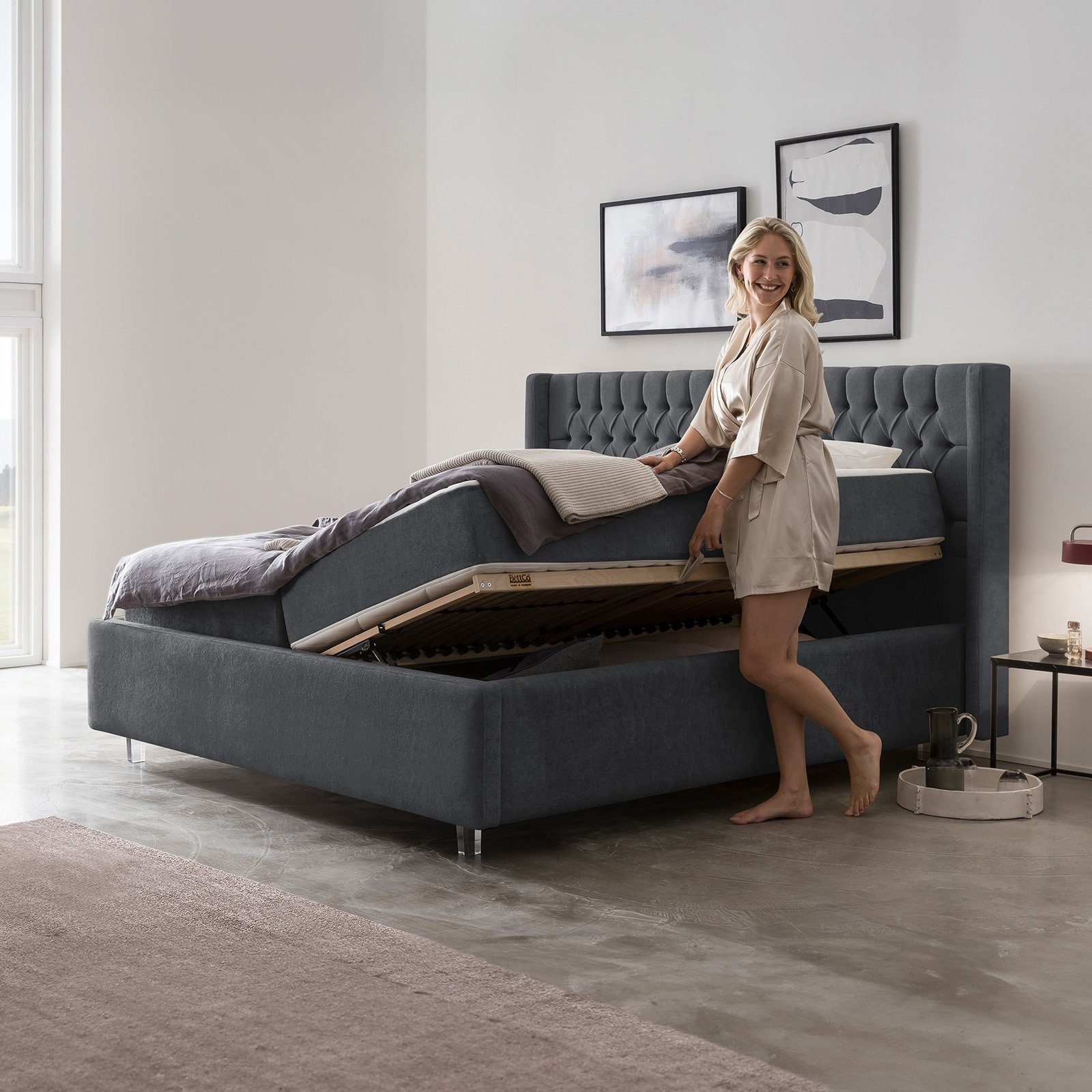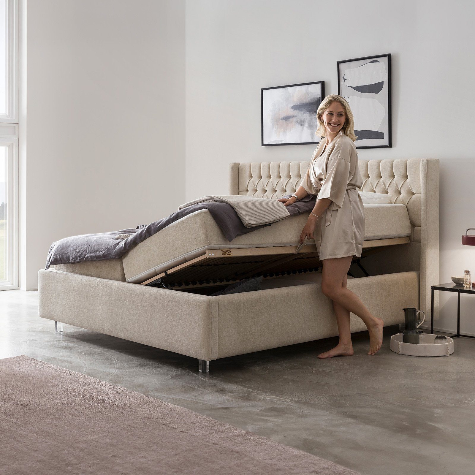 Ausstattung | Stauraum XXL Lattenrost Füße Acryl Bettgestell mit Bettkasten Wendematratze |