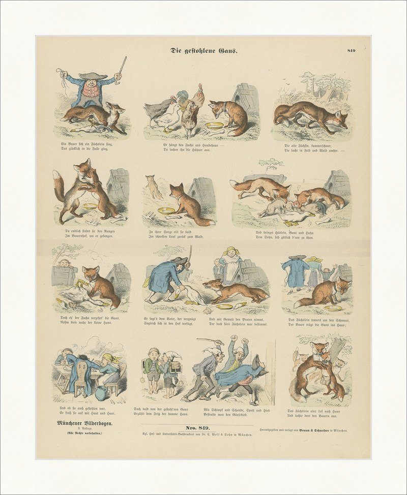 BillerAntik Kunstdruck Die gestohlene Gans Reinicke Bauer Fuchs Holzstich Münchener Bilderbog, (1 St)