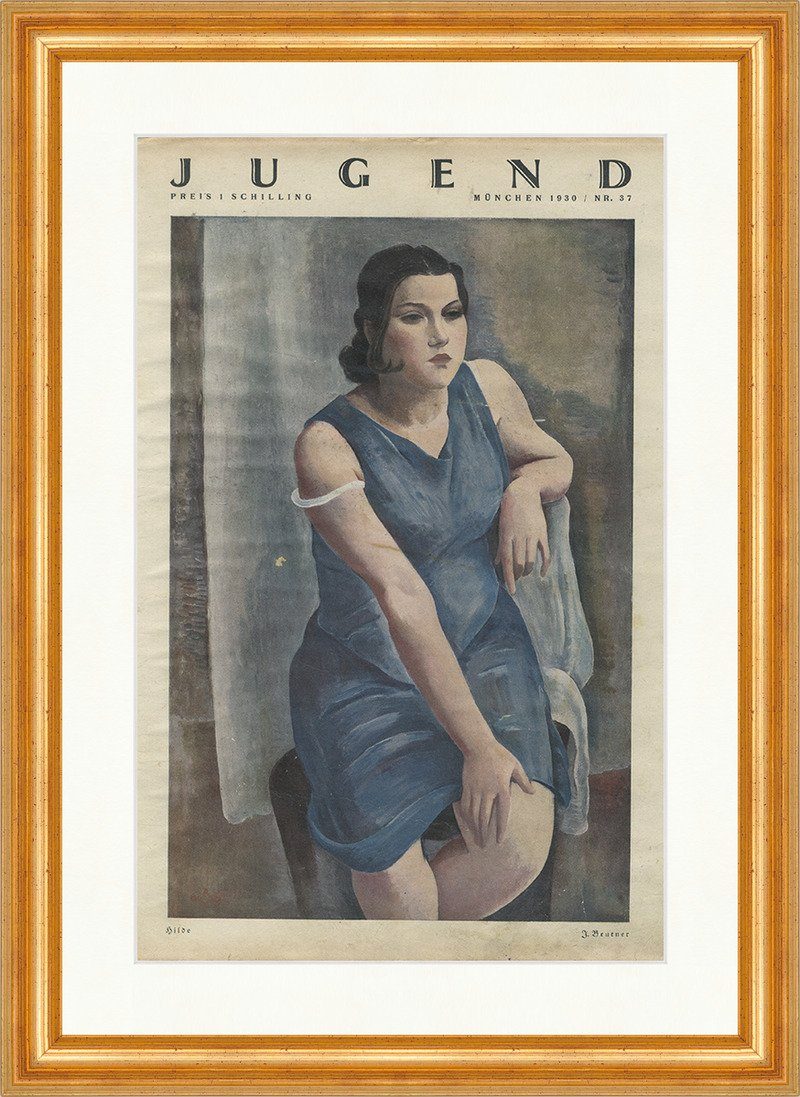 Kunstdruck Hilde Titelseite Nr. 37 J. Beutner Dame Blau Jugend Gerahmt 5341