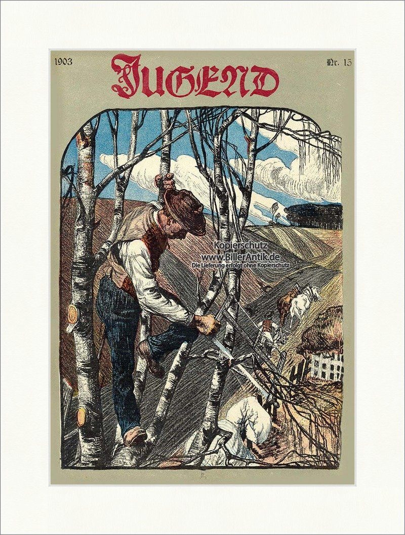 BillerAntik Kunstdruck Titelseite der Nummer 15 von 1903 Georg Drawer Bauer Baumfällung Jugen, (1 St)