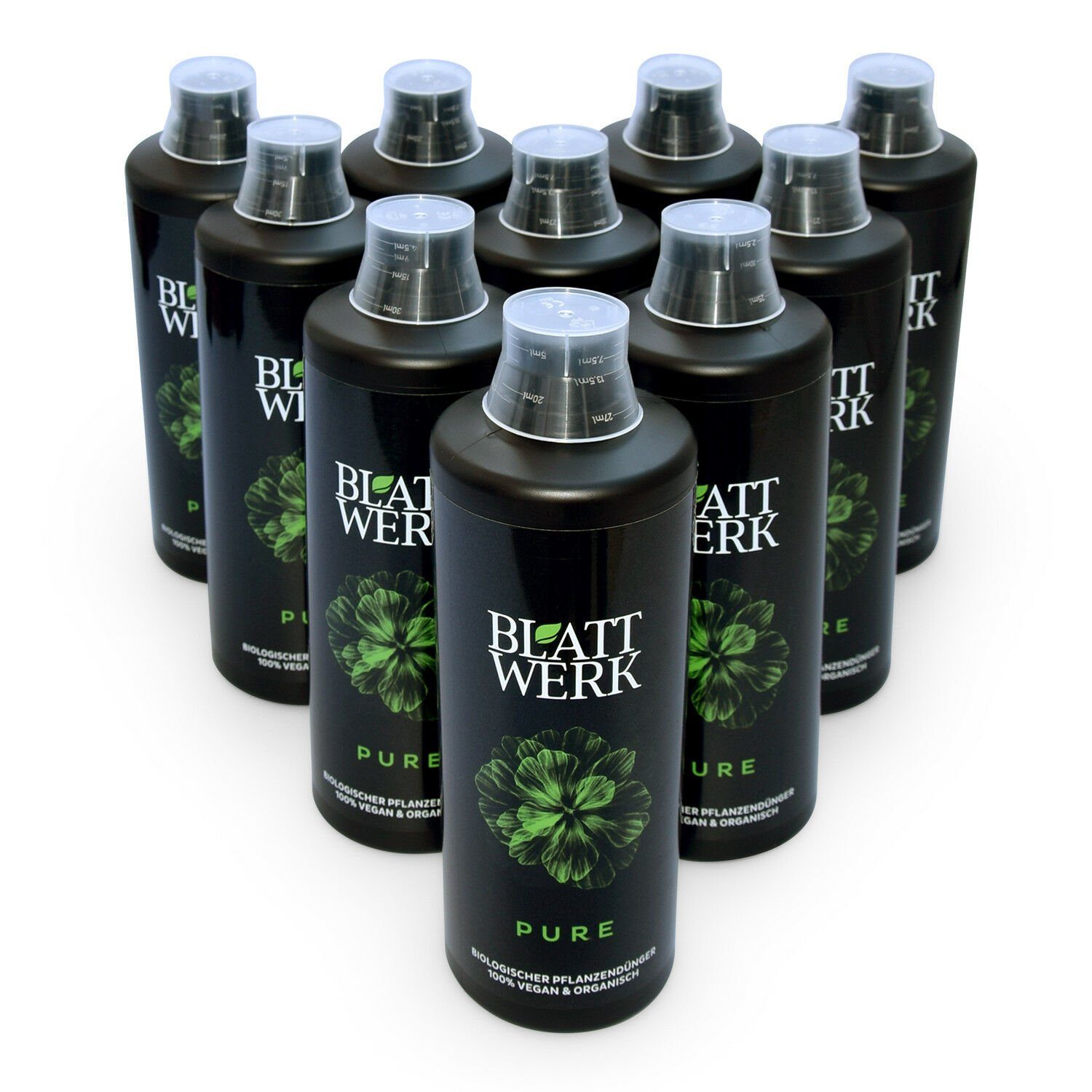 Das durch mehrere Aufschluss- und Filtrationsprozesse entstehende BLATTWERK, entha¨lt hochkonzentrierte frei verfügbare Aminosa¨uren sowie Mineralien, Milchsa¨uren und Zucker. In Kombination mit dem enthaltenen, pflanzenverfügbaren Ammoniumstickstoff eignet sich BLATTWERK als Universaldünger für Zimmerpflanzen, Obst- und Gemüse, Kräuter und Rasen. Aminosäuren und Stickstoff stehen der Pflanze direkt zur Verfügung und müssen nicht erst synthetisiert werden.