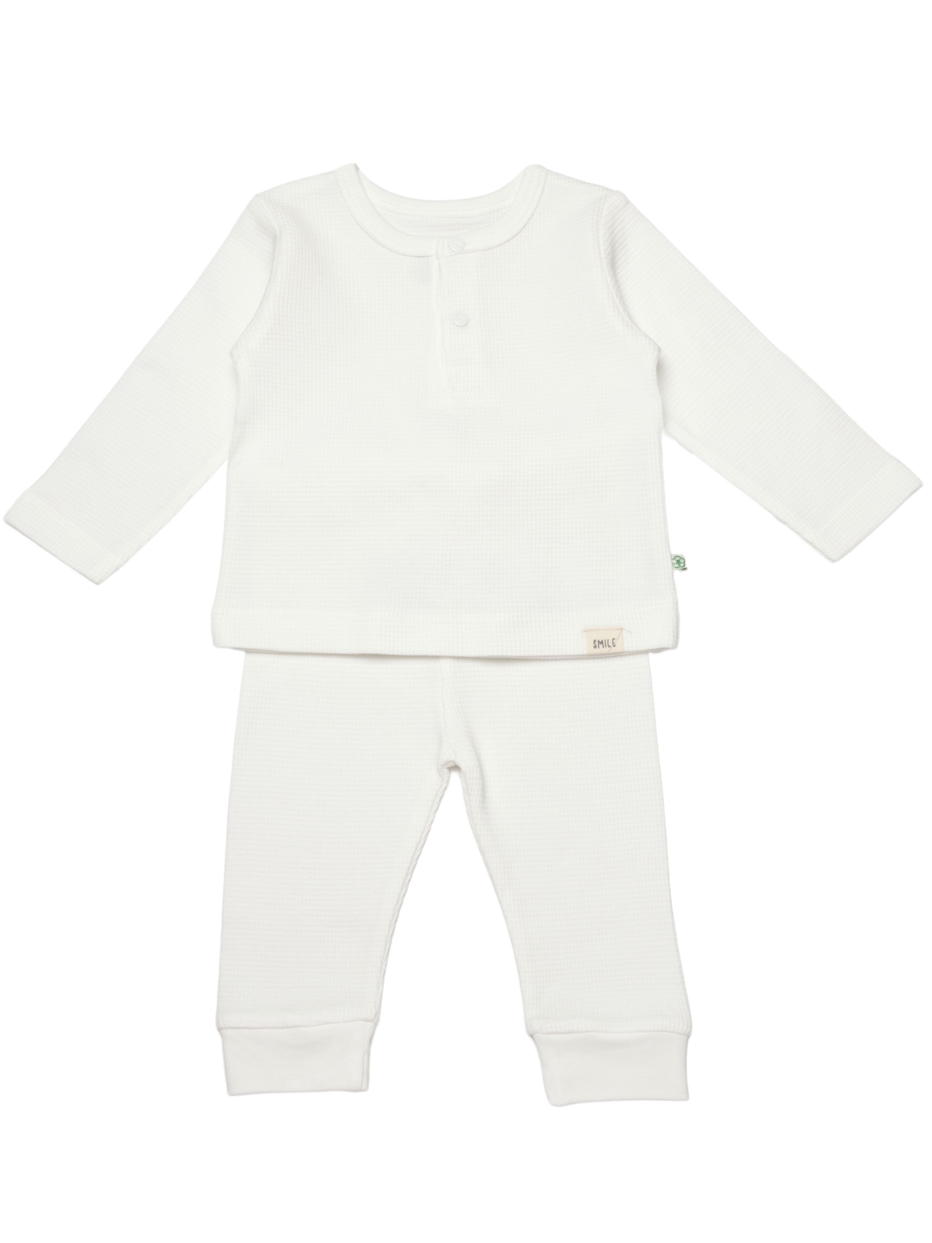 Das WAFFLE SMILE 2er Set von biorganic – bestehend aus Langarmshirt und Hose – ist ideal für Eltern, die Qualität, Еко-товари und Komfort schätzen. Perfekt als Geschenk zur Geburt, zum Geburtstag, für Babypartys und Babyshowers.