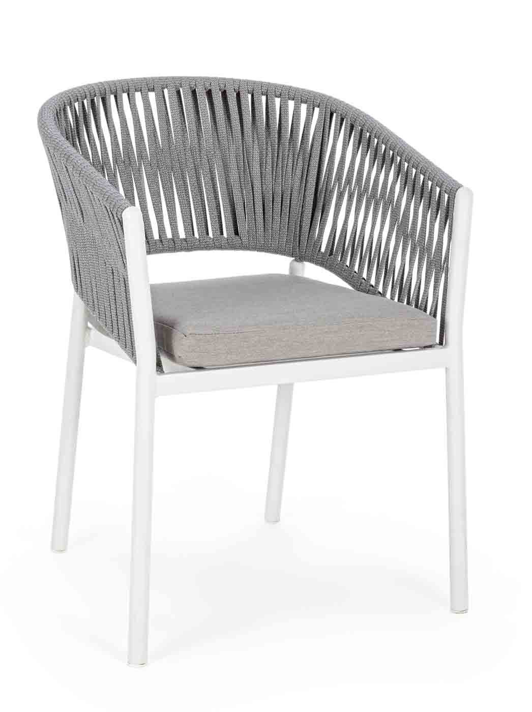 Gartenstuhl Florencia mit Armlehnen und Aluminiumgestell. Das verwendete Geflecht besteht zu 100% aus Tetoron-Schnüren und sind ideal für den Außenbereich. Die Sitzfläche ist mit witterungsbeständigem und abziehbaren Olefin-Bezug verarbeitet. Der Florencia Gartenstuhl macht nicht nur optisch einiges her, sondern ist vorallem bequem und langlebig.