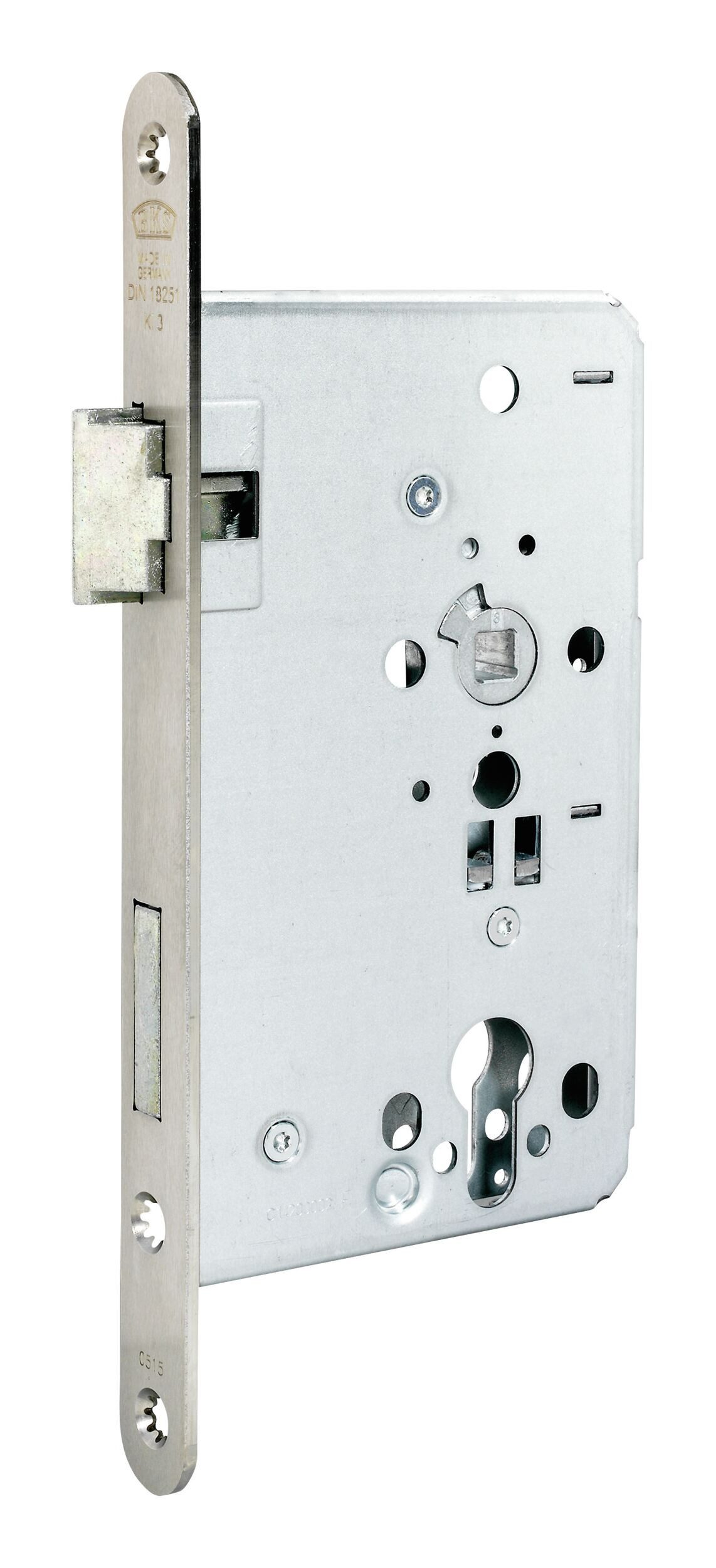 BKS Objekttür-Einsteckschloss, PZ, 60/72/8,2 rund B-515, mit Wechsel , DL, nickelsilber